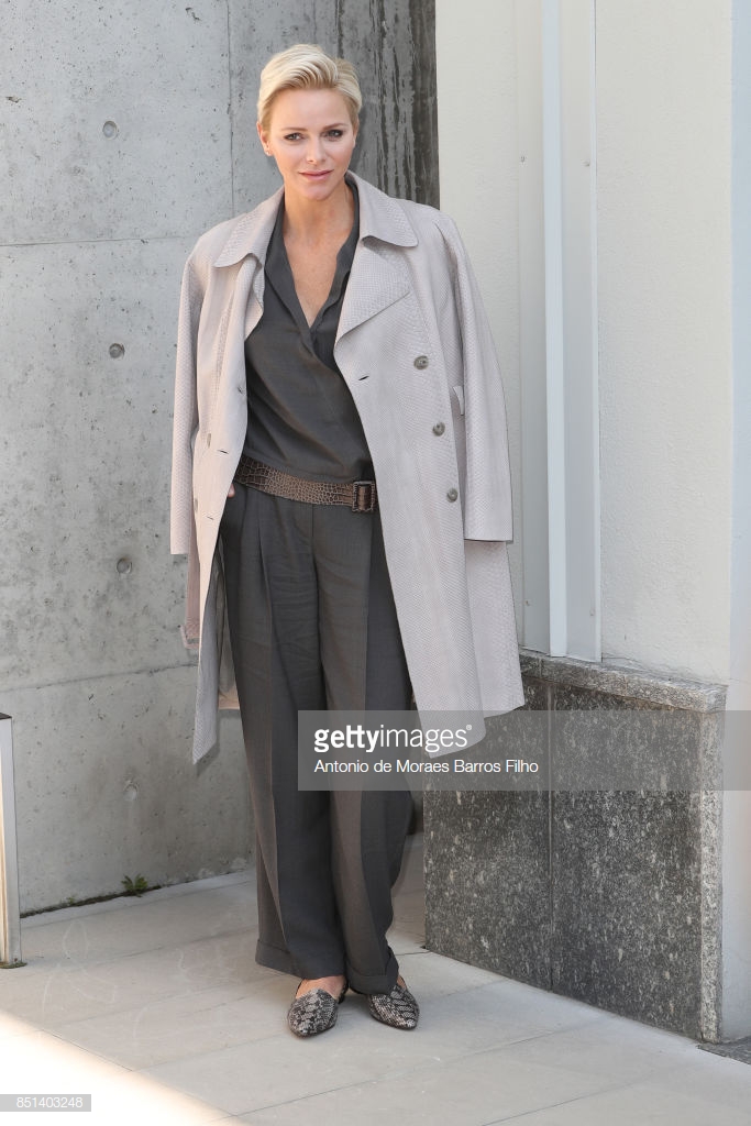 Công nương xứ Monaco tại show của thương hiệu Giorgio Armani trong khuôn khổ Tuần lễ thời trang Xuân - Hè 2018 ở Milan.