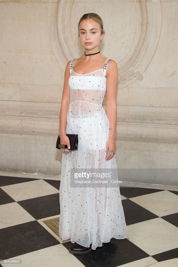 Cô diện thiết kế đầm trắng xuyên thấu của Dior khi đến xem show của thương hiệu này tại Tuần lễ thời trang Paris Xuân - Hè 2018.