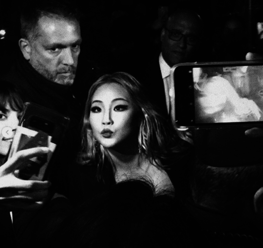 Cô nàng đến dự vì có bạn thân debut làm nhà thiết kế trong show diễn lần này. CL với trang phục đen tuyền, tóc vàng và eyeliner siêu đậm không có gì mới mẻ, nhưng nhìn trái nhìn phải vẫn toát lên vẻ cá tính, thời thượng.
