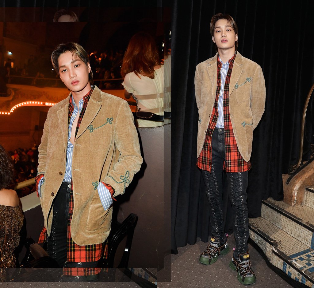 ‘Chàng thơ’ của ngành thời trang sao có thể vắng mặt được. Kai luôn là ưu tiên hàng đầu, luôn được nhận thiệp mời sớm nhất với được mong đợi tha thiết nhất từ ông lớn Gucci. Bản thân Kai cũng rất thích mặc đồ của hãng ngày trong cuộc sống đời thường.