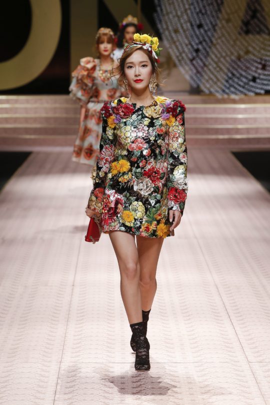Nổi tiếng xưa nay với tên gọi ‘Nữ hoàng băng giá’, Jessica xuất hiện như một cô công chúa kiêu kỳ. Cô nàng là fan của váy bồng, họa tiết hoa sặc sỡ, make up trong trẻo tiểu thư và giày cao gót xấp xỉ 20 cm.