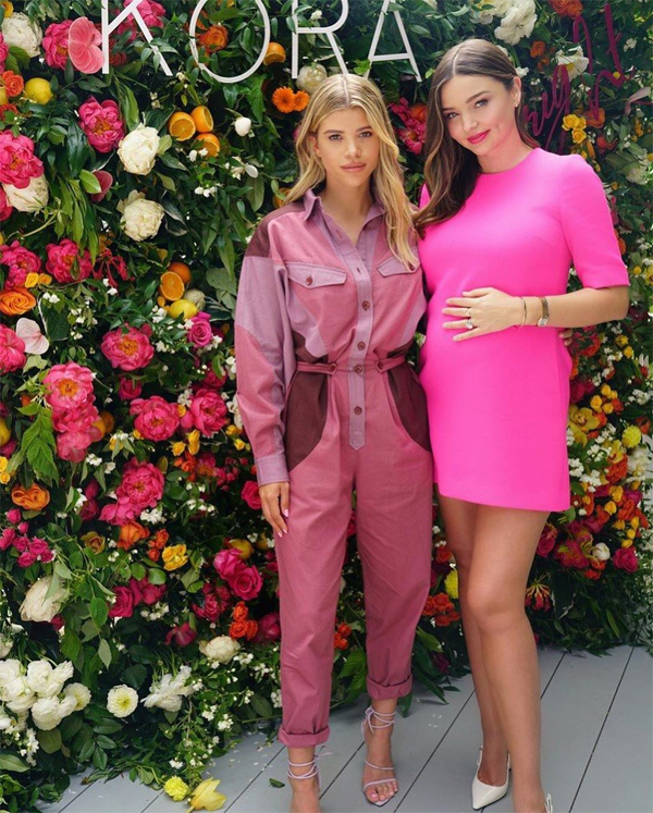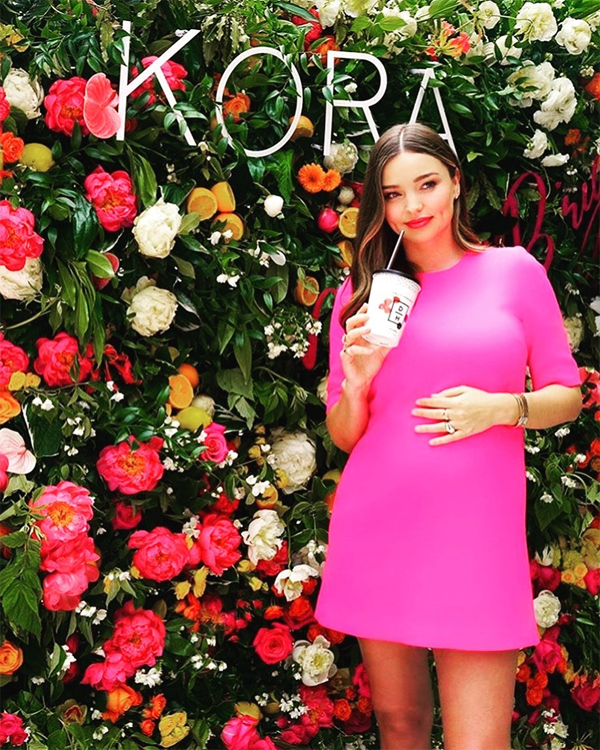 Bà bầu siêu mẫu Miranda Kerr xinh đẹp trong chiếc váy suông ngắn màu hồng neon tại buổi ra mắt dòng sản phẩm do mình làm chủ