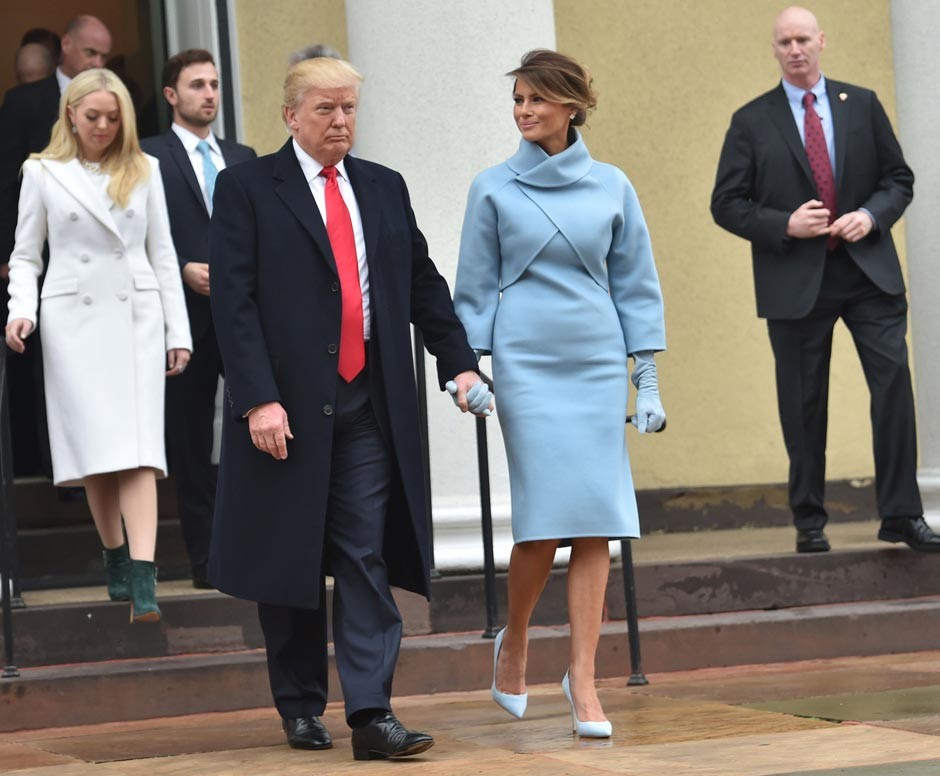 Đệ nhất Phu nhân Mỹ Melania Trump chọn một thiết kế váy màu xanh biển thanh lịch của Ralph Lauren khi xuất hiện bên tổng thống Donald Trump.