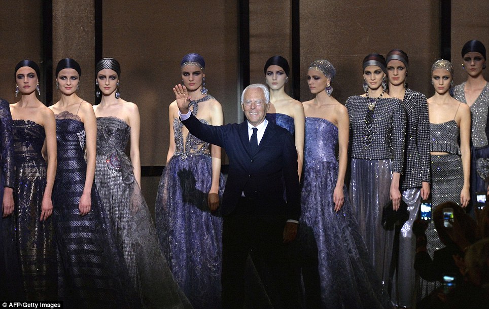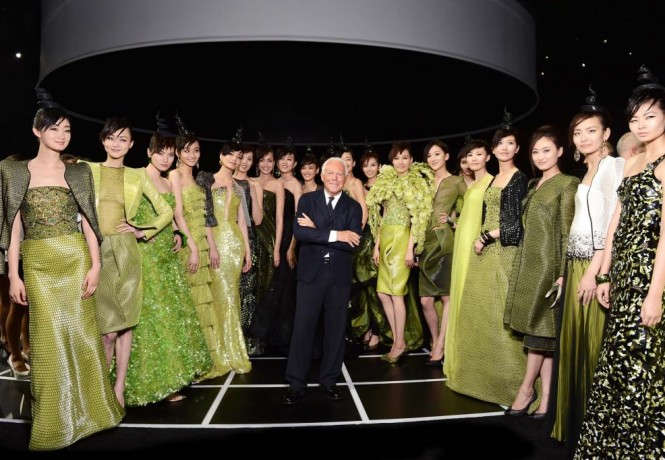 Giorgio Armani là NTK phương Tây đầu tiên mở cửa hàng thời trang của mình ở Trung Quốc vào năm 1998. Trong hình ông cùng dàn mẫu Trung Quốc tại show thời trang “One Night Only” diễn ra ở thành phố Bắc Kinh vào năm 2012.