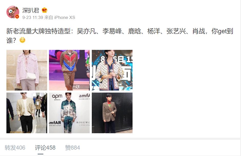 Gần đây, blogger xứ Trung có đưa bài so sánh về nhan sắc của dàn nam minh tinh hàng hot hiện nay khi mặc trên người những bộ trang phục tuy xa xỉ nhưng lại vô cùng “khó đỡ”. Ngô Diệc Phàm, Lý Dịch Phong, Lộc Hàm, Trương Nghệ Hưng, Tiêu Chiến, Dương Dương là những gương mặt được đưa lên bàn cân nhan sắc.