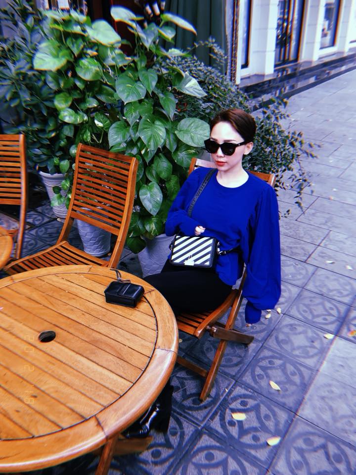 Nhã Phương đã không còn diện đồ trắng như thường thấy. Nữ diễn viên xinh đẹp diện cả cây đen cá tính xuống phố.