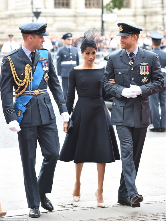 Tham gia buổi lễ kỷ niệm 100 năm Không quân Hoàng gia Anh, Công nương Meghan Markle đã sử dụng loại áo lót không phù hợp khiến cô mắc lỗi trang phục khi áo nội y bên trong hằn thấy rõ trên thân váy màu xanh navy sẫm màu