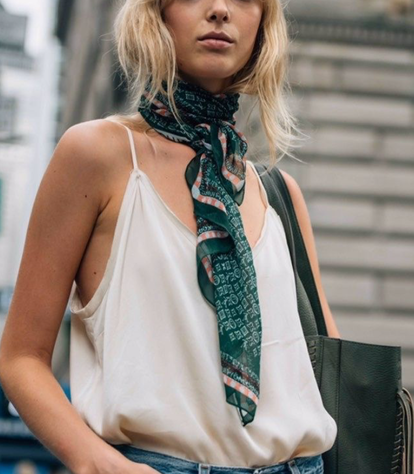 Để nâng tầm bộ trang phục của mình, bạn có thể sử dụng một chiếc khăn quàng quấn quanh phần quai túi xách. Một chiếc khăn cũng có thể được sử dụng như một món phụ kiện dành cho tóc hay đơn giản hơn là bạn chỉ cần quàng khăn quanh cổ là được.