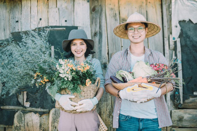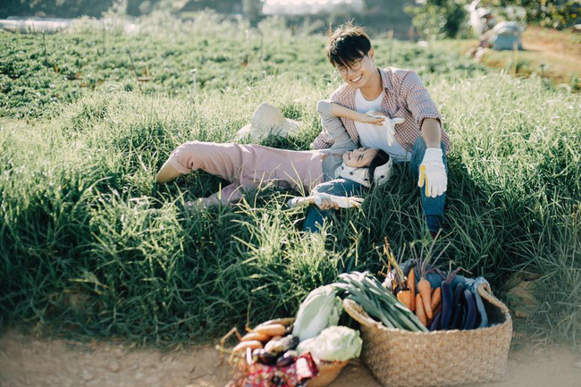 Tình yêu vườn rau xanh ngát xanh, cùng nhau trồng trọt, cấy hái cũng là một ý tưởng thú vị không kém.