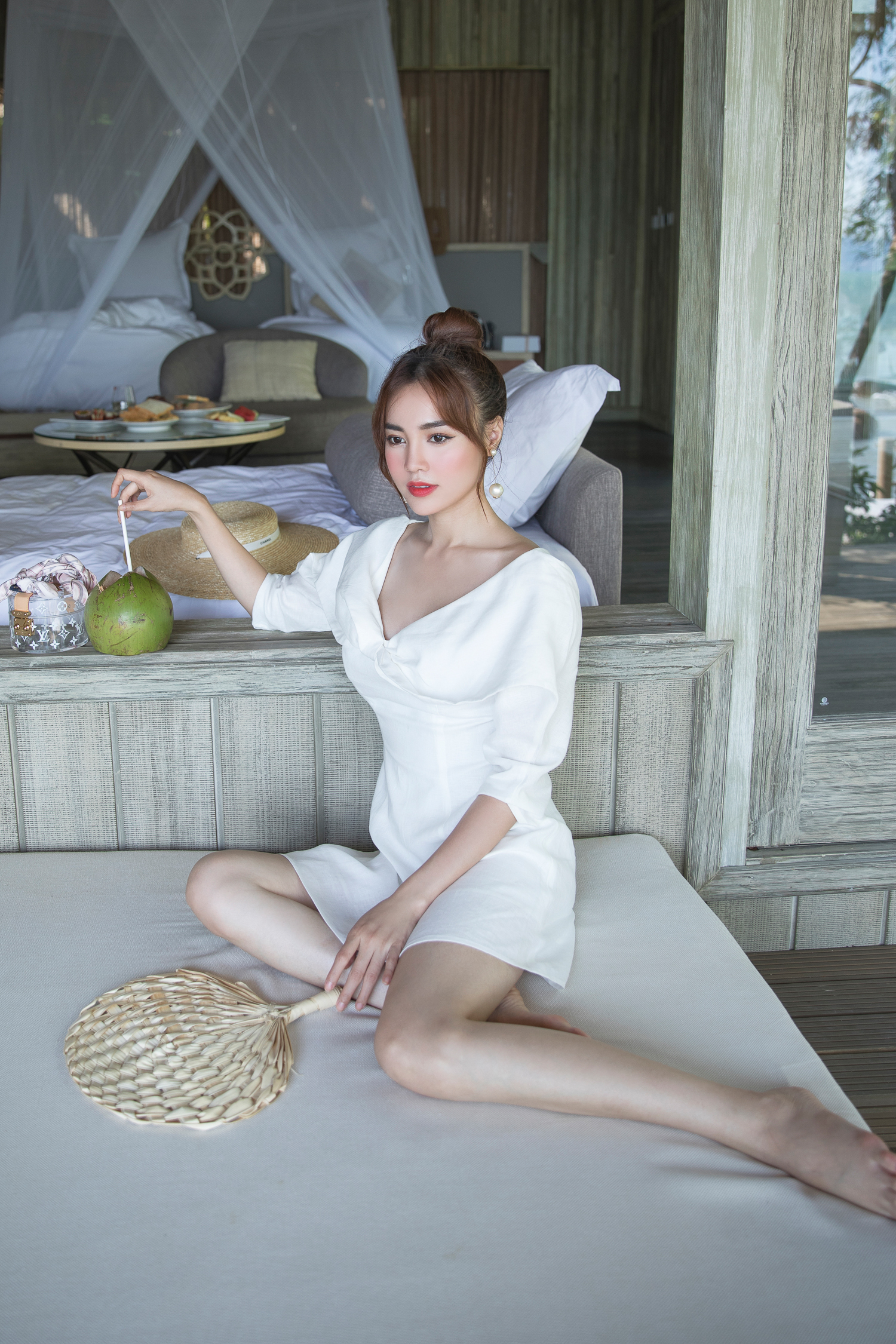 Ánh mắt trong veo, hình thể thanh mảnh, ngọc nữ làng điện ảnh thảnh thơi thả dáng trong chiếc váy trắng, khoe nhan sắc dễ khiến người đối diện phải ngẩn ngơ.