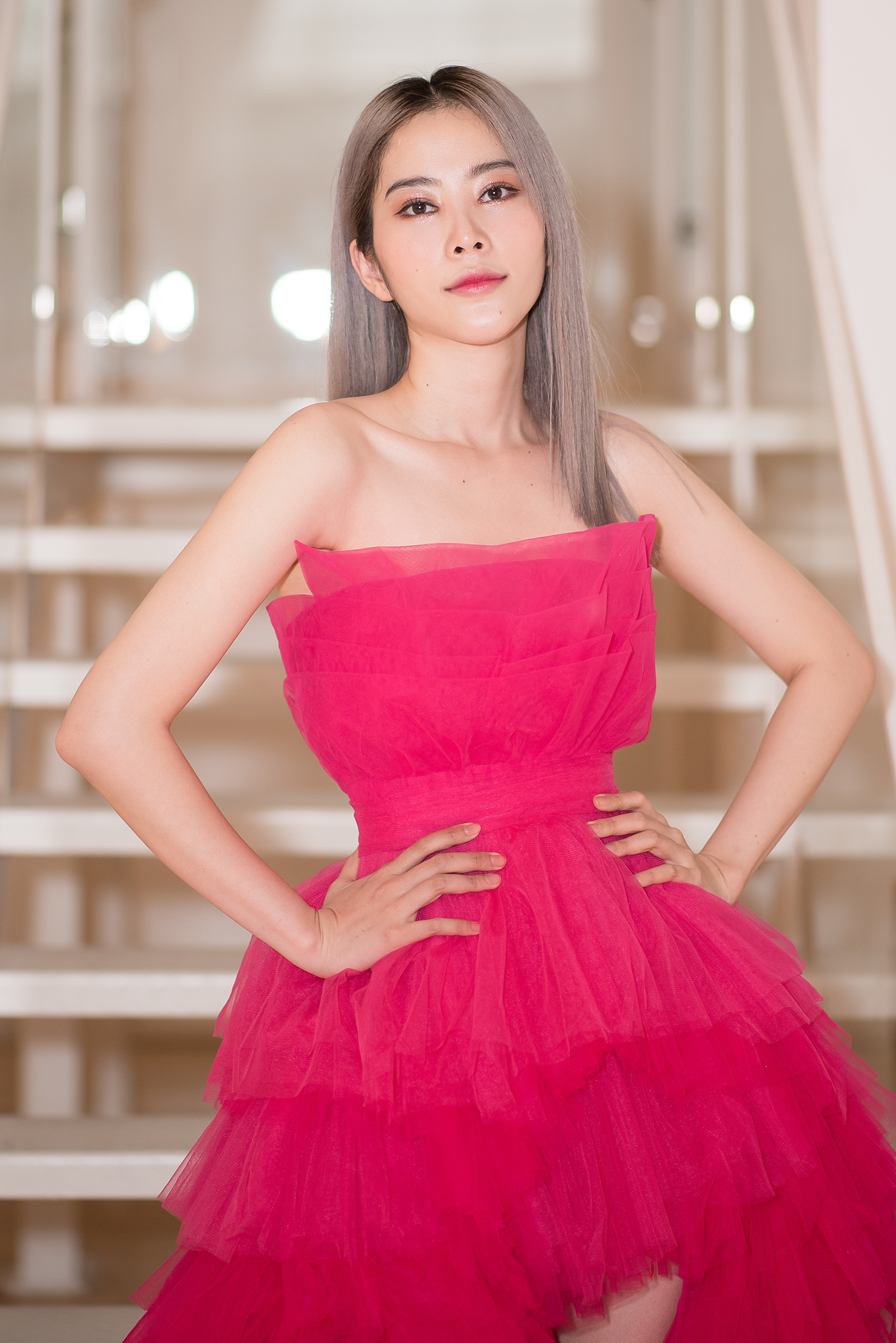 Trang phục có màu sắc nổi bật thế nên người đẹp chẳng cần sử dụng thêm phụ kiện gì, chỉ với mái tóc màu sáng là đã đủ “chiếm sóng”.