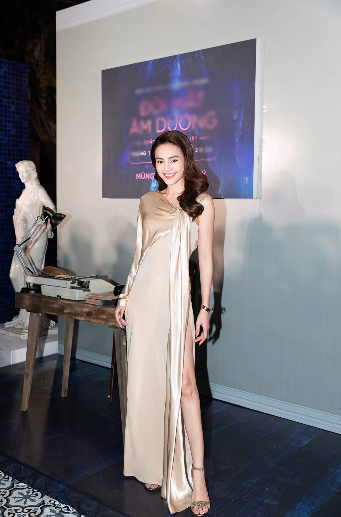 Chiếc váy có đường cắt bất đối xứng, form dáng lạ mắt khiến Ninh Dương Lan Ngọc trở nên cực kỳ quyến rũ.