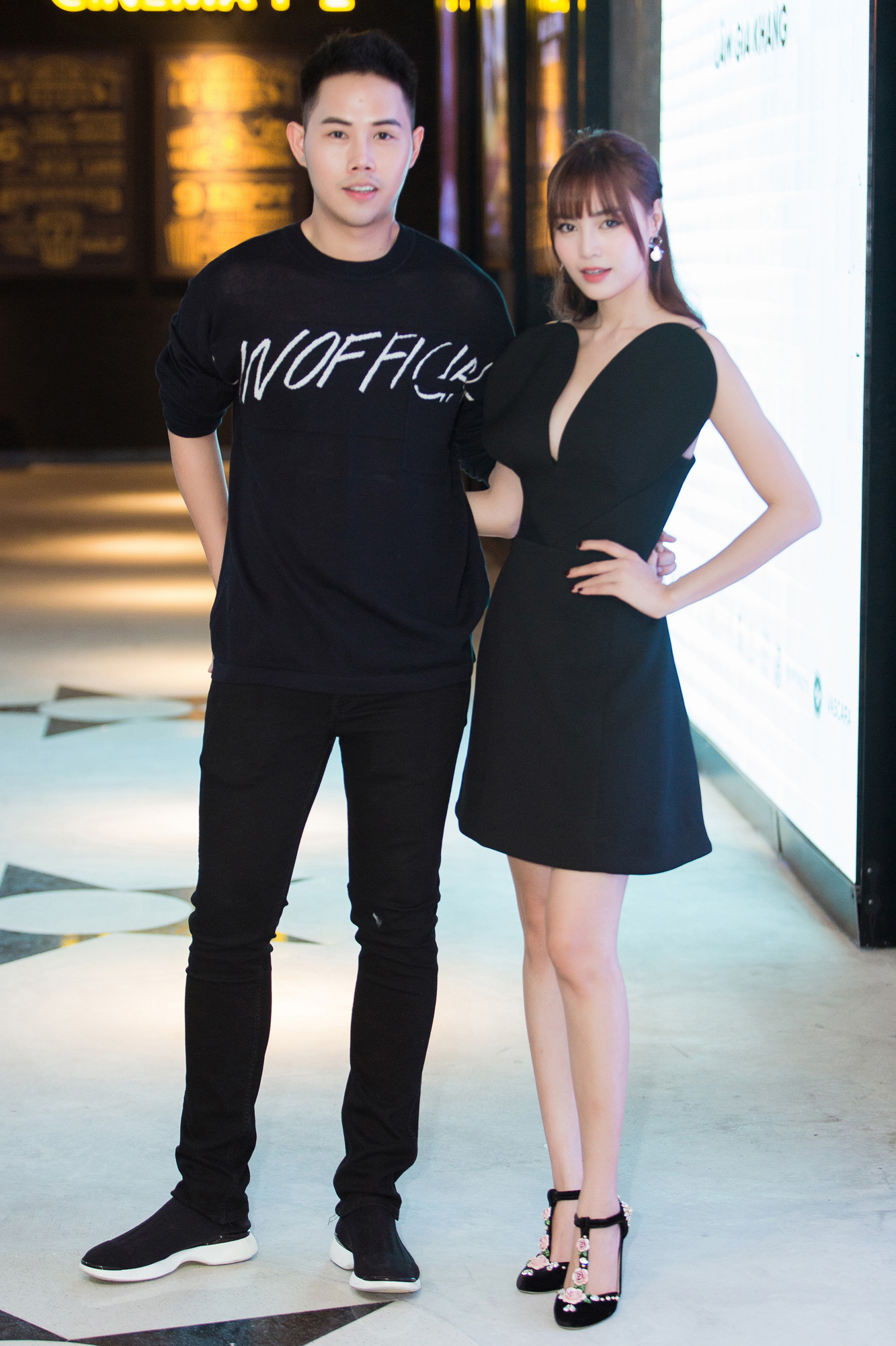Cô tạo dáng cùng “phi công trẻ” Lê Xuân Tiền, anh chàng diện mẫu vest nhung xanh bắt mắt.