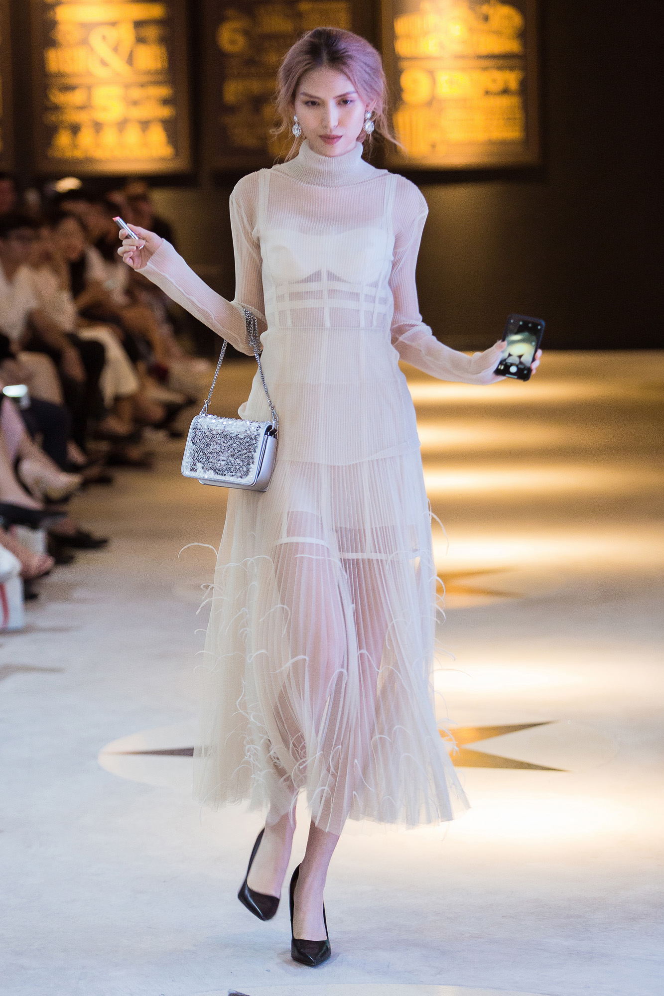 Trong đêm diễn, các người mẫu không còn thể hiện thần thái lạnh lùng, sắc lạnh trên sàn runway mà thay vào đó là nét diễn “ngả ngớn”, “ngúng nguẩy” sang chảnh cực kỳ đáng yêu.