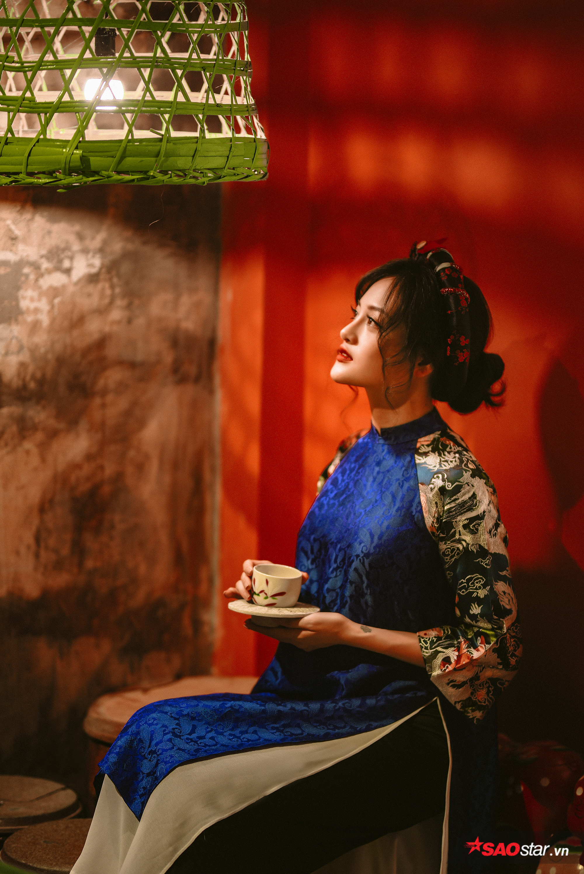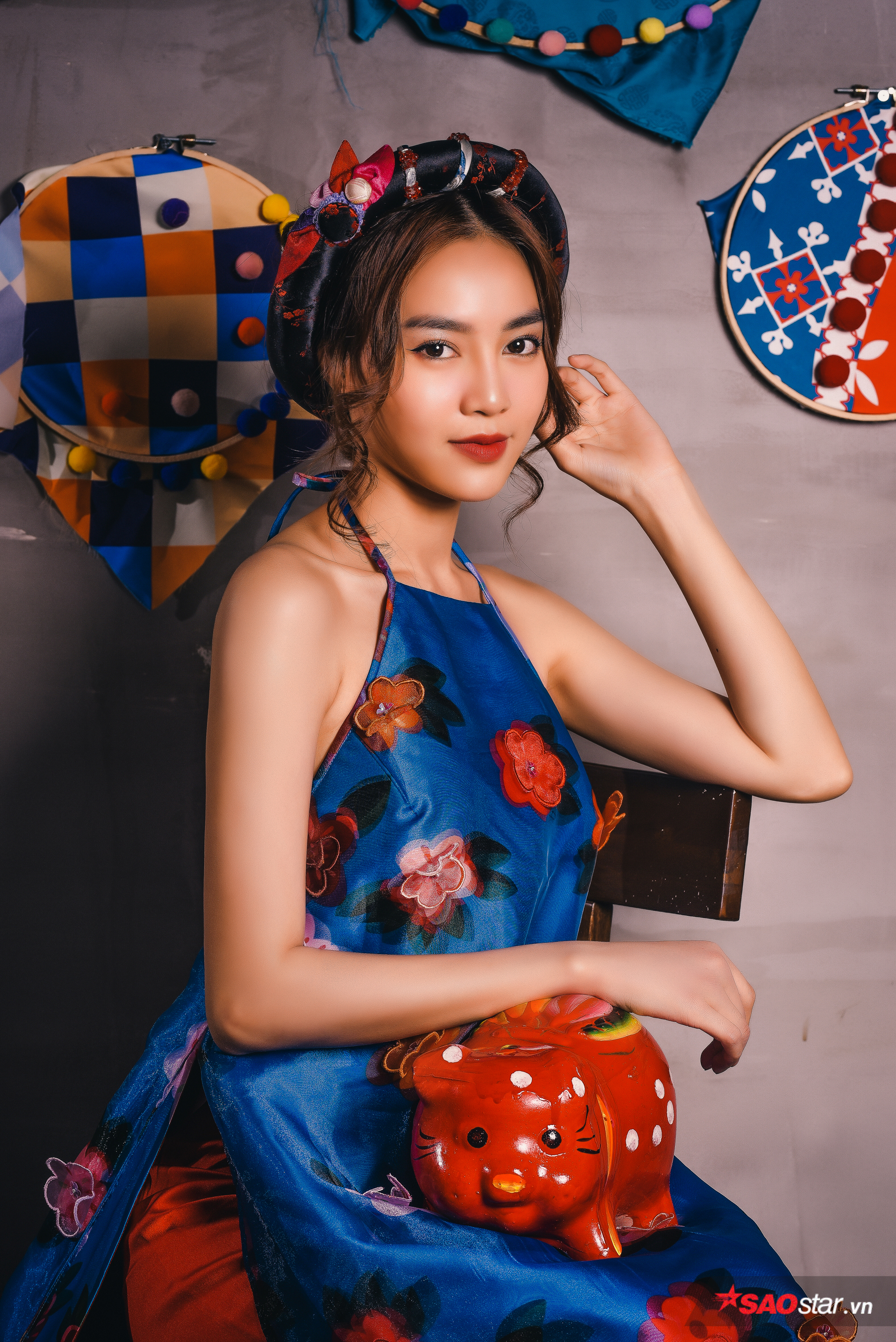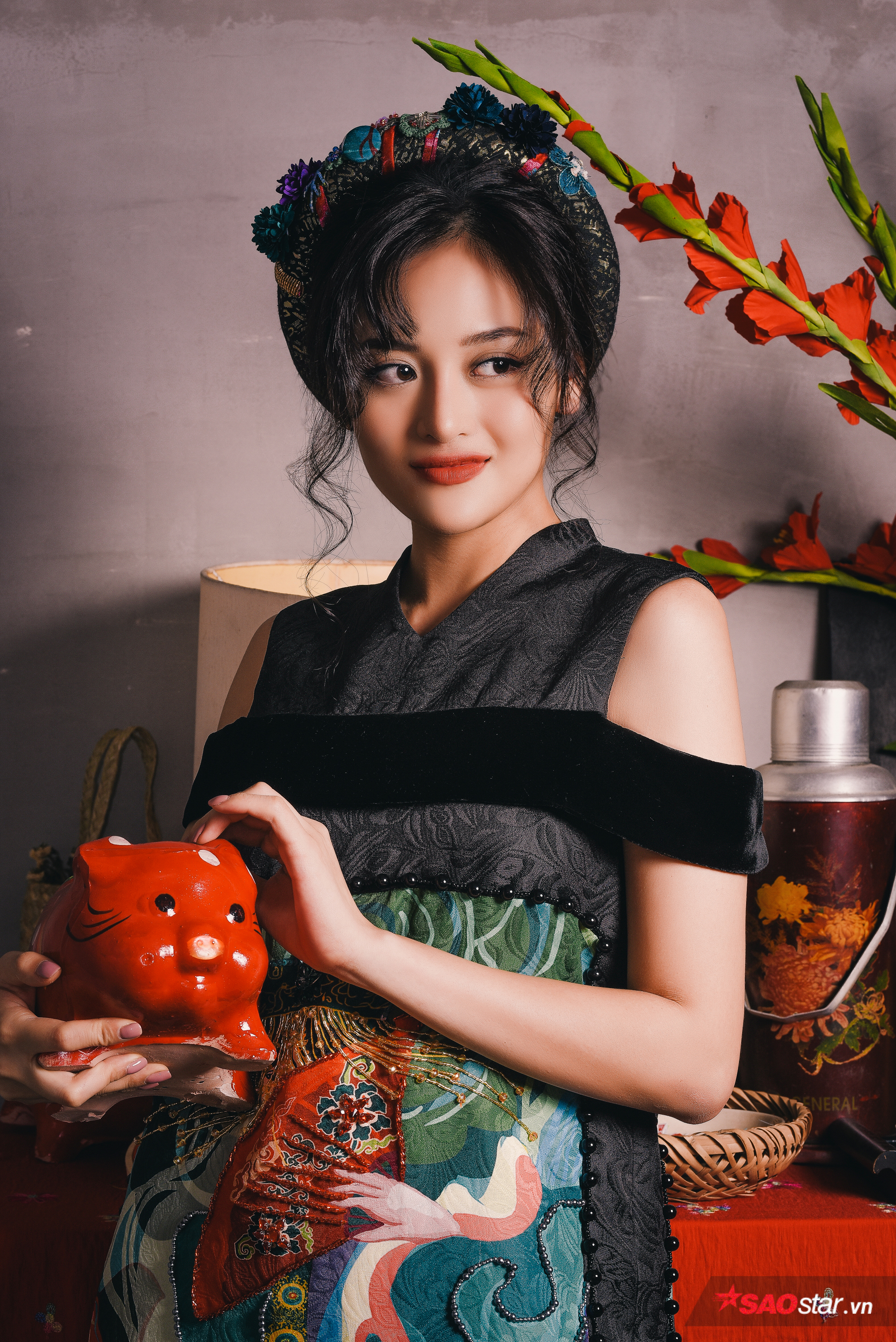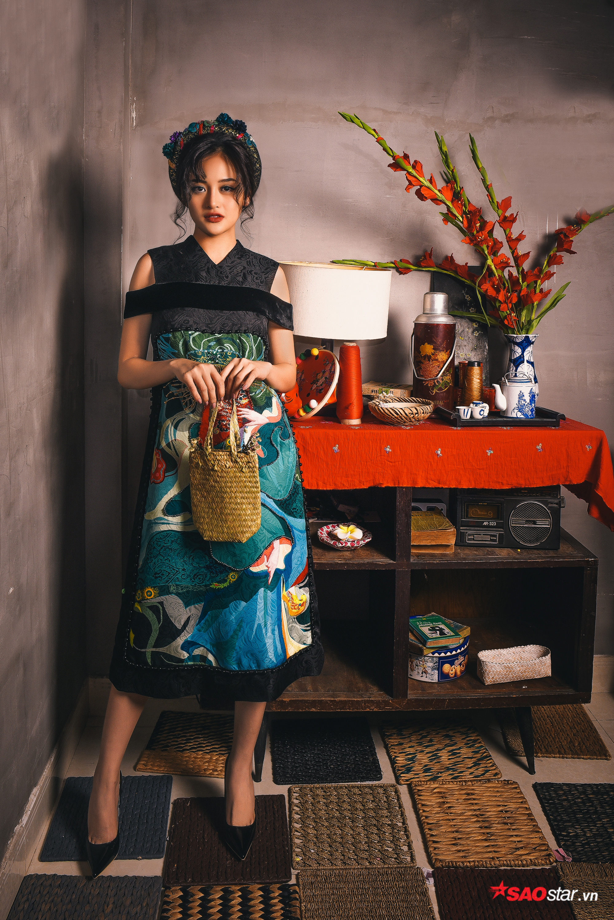 Vẻ đẹp đằm thắm, dịu dàng với nét duyên ngầm của Ninh Dương Lan Ngọc trong thiết kế váy yếm cách tân với họa tiết hoa trên thân váy