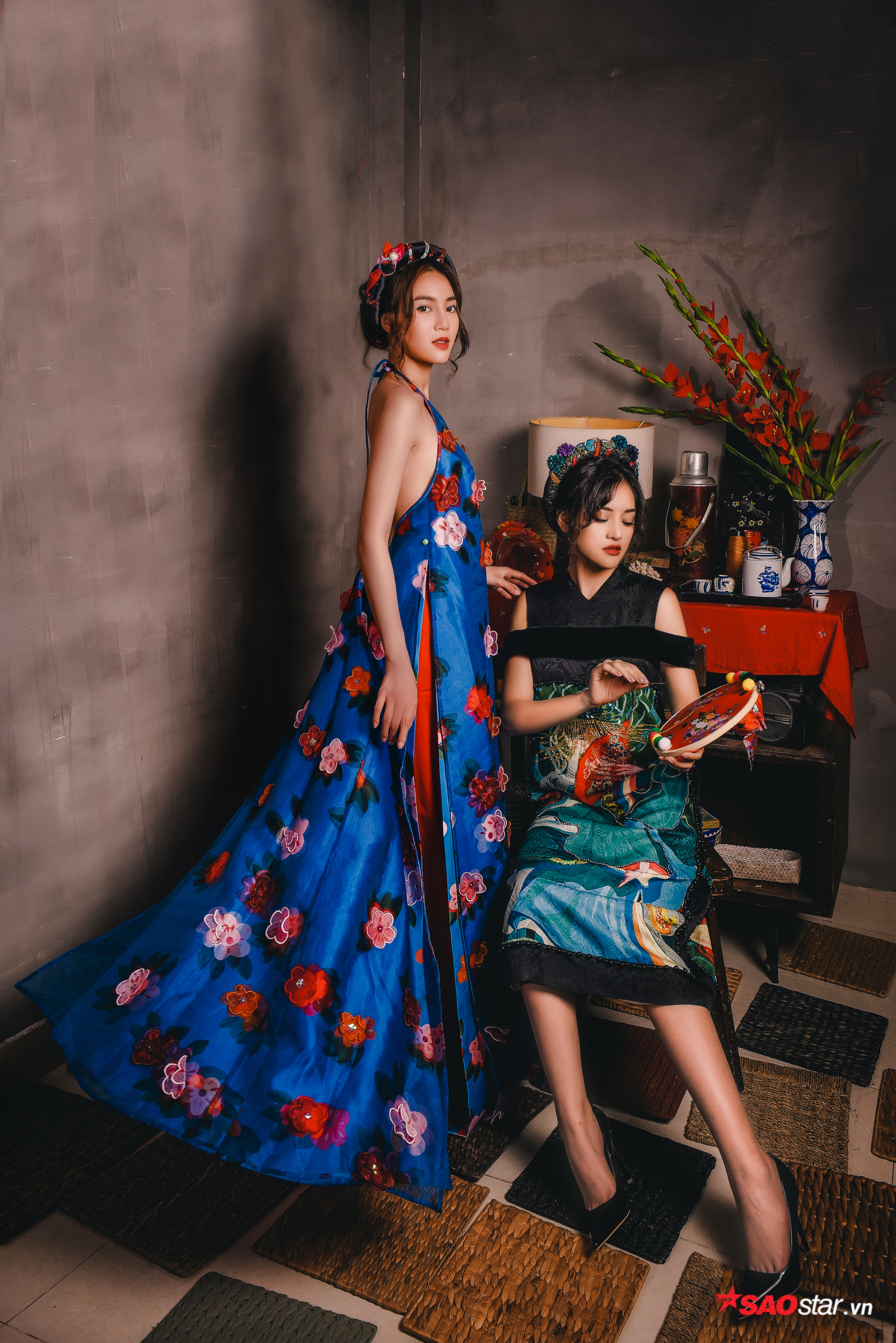Cả hai người đẹp hòa mình vào không khí mùa xuân rộn ràng thông qua bộ ảnh Tết gửi đến độc giả
