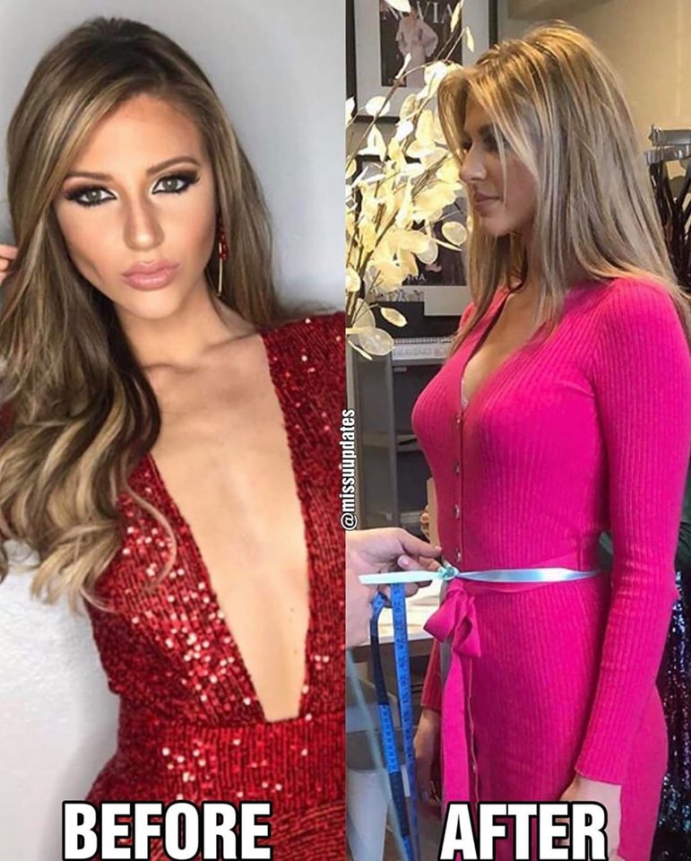 Hình ảnh trươc và sau khi can thiệp dao keo vòng một của đối thủ Hoàng Thùy.
