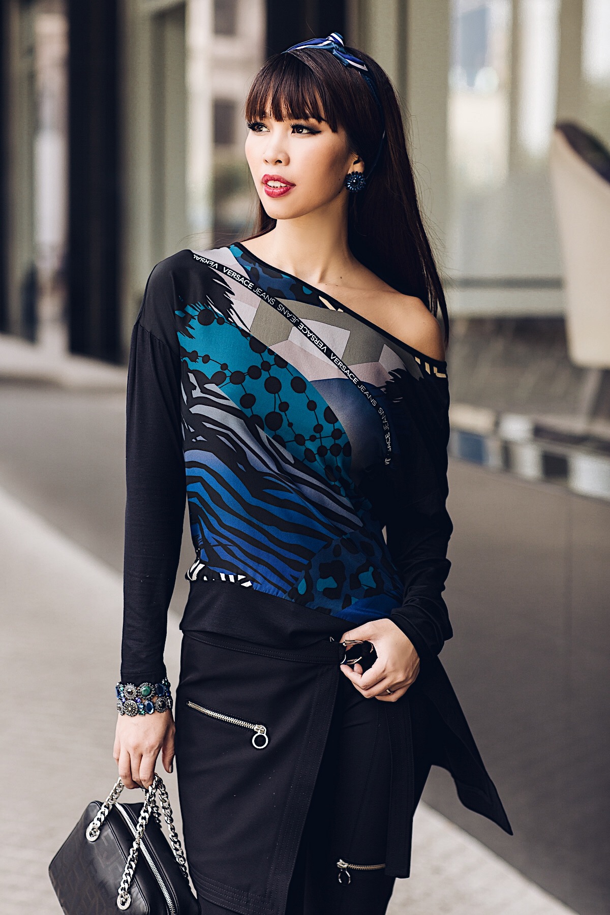 Áo khoác măng tô với họa tiết đặc trưng của Just Cavalli trên cổ áo, khoác nhẹ cho tiết trời se lạnh, vừa ấm áp vừa thời trang là lựa chọn cực kỳ sành điệu cho ngày se lạnh. Kết hợp khéo léo với áo thun bên trong họa tiết da trăn, mang lại vẻ đẹp hiện đại, cá tính nổi bật. Set đồ của siêu mẫu số 1 Việt Nam trở nên khỏe khoắn với quần jean ôm dáng, chất liệu mềm mịn và boot thấp cổ thời thượng.