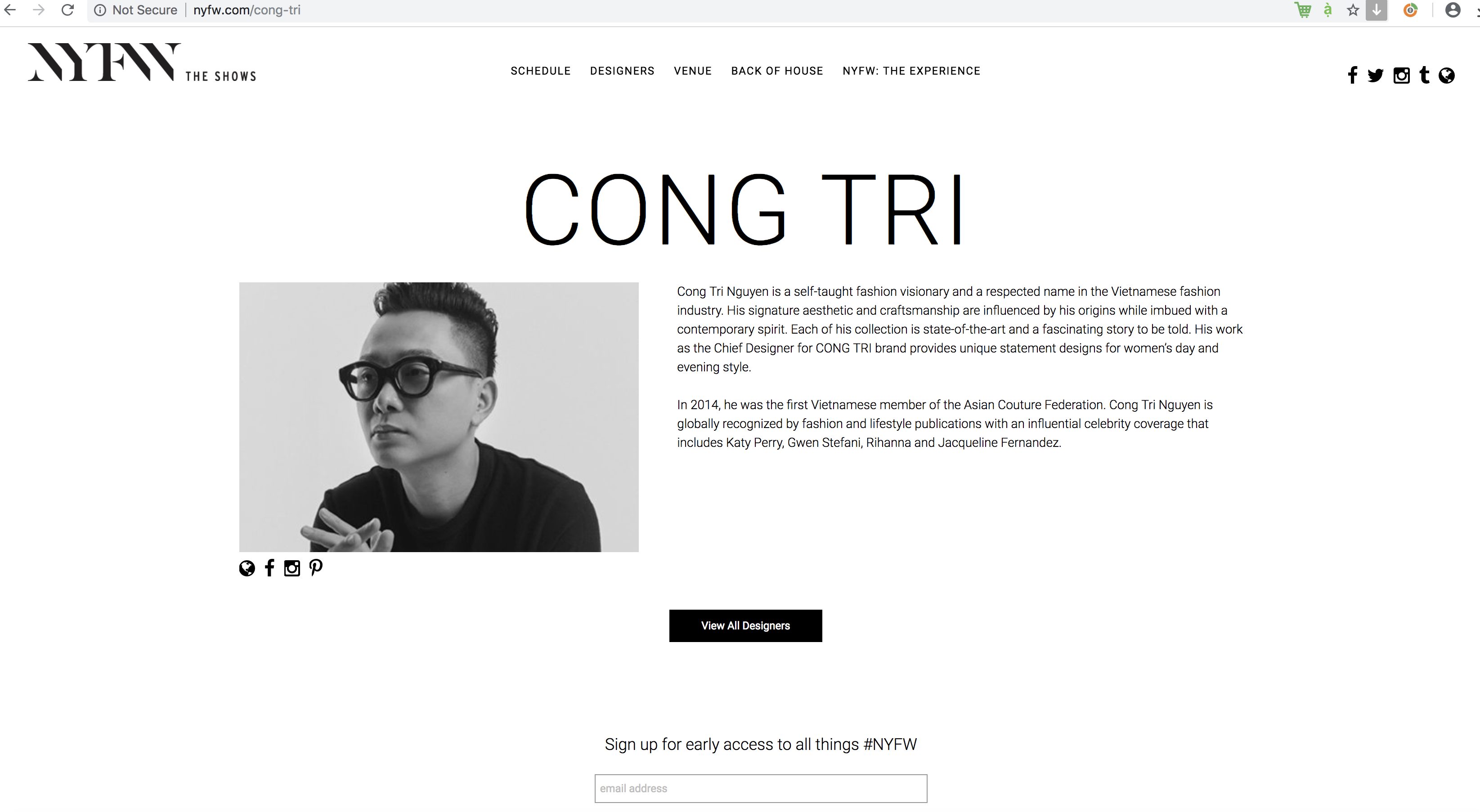 Ngày 11/02/2019, bộ sưu tập mới nhất của NTK Công Trí sẽ chính thức trình diễn tại New York Fashion Week 2019.