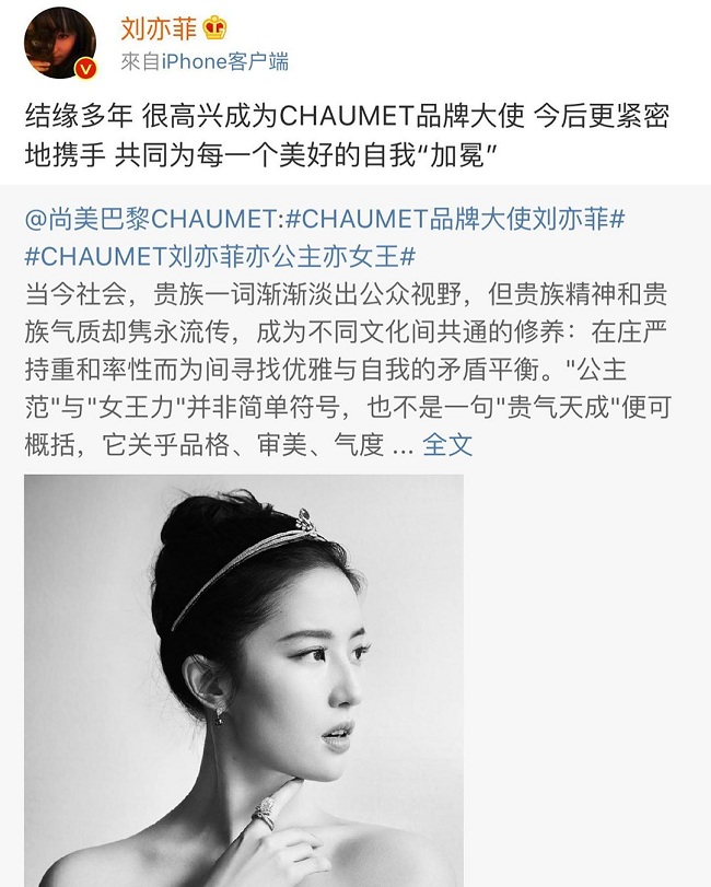 Thần tiên tỷ tỷ Lưu Diệc Phi la gương mặt đại diện cho hãng trang sức cao cấp