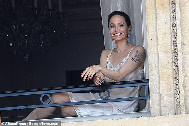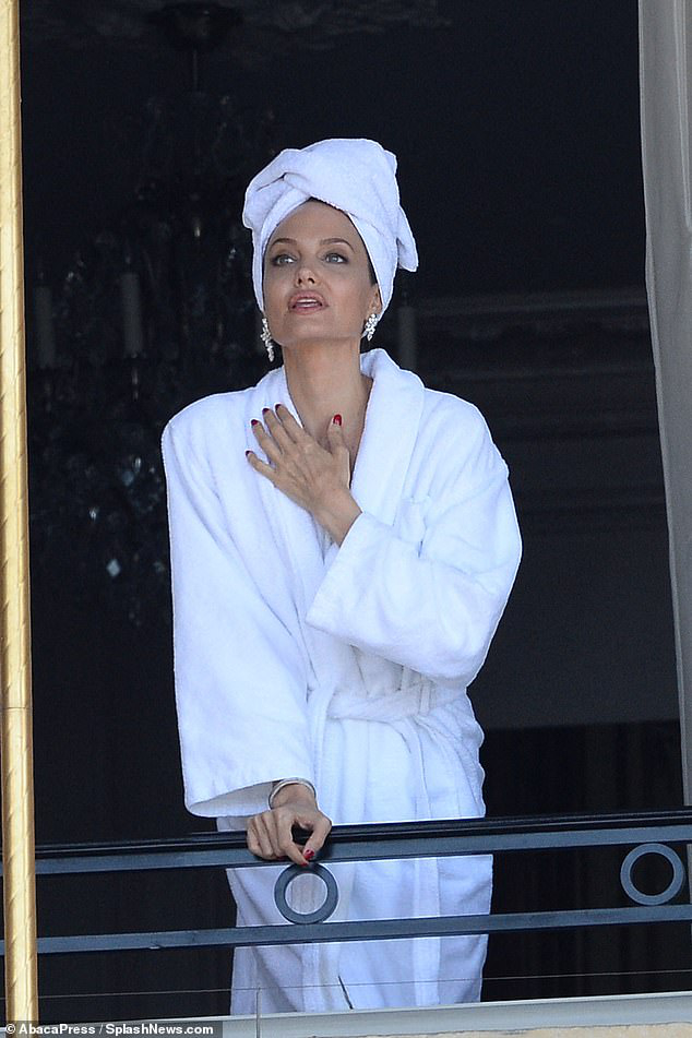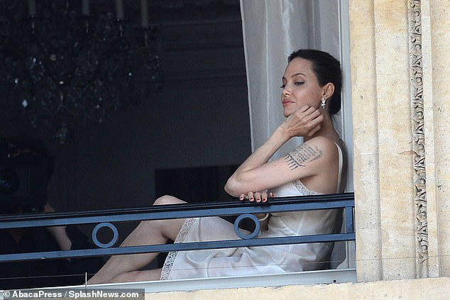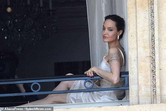 Mỹ nhân hàng đầu Angelina Jolie mặc váy ngủ , thả dáng quyến rũ bên ban công trong một shoot quay quảng cáo cho hãng nước hoa tại Pháp thu hút sự chú ý của truyền thông.
