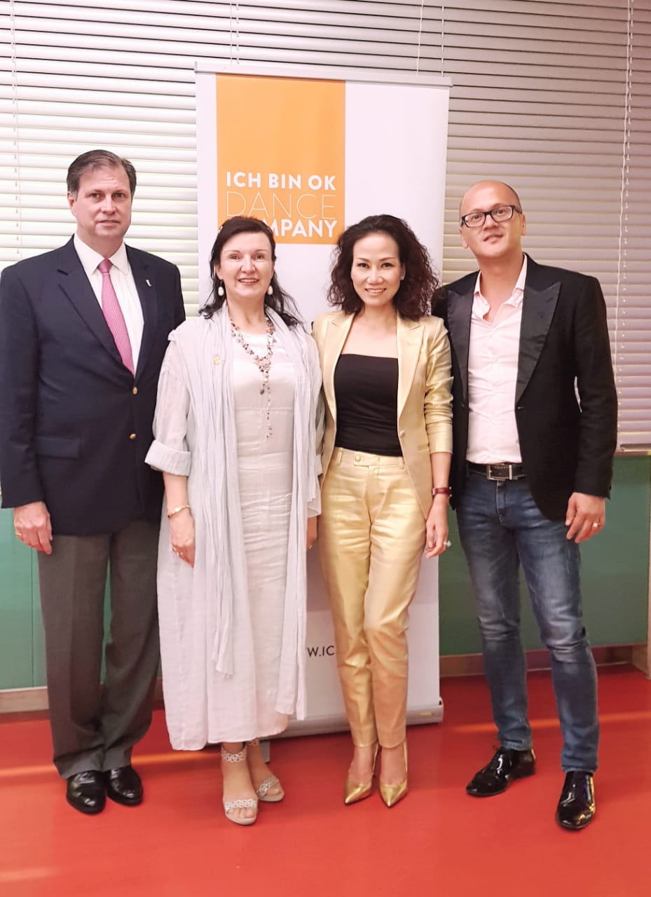 Với vai trò là đại diện Hiệp hội Flame of Peace Việt Nam, NTK Patrick Phạm và DN Thanh Phương đã cùng gia đình Hoàng Gia Áo tham dự buổi biểu diễn vũ kịch từ thiện do các vũ công Ich Bin O.K trình diễn tại nhà hát Akzent.