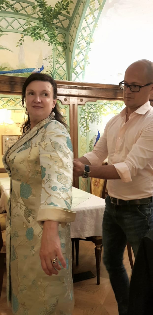 NTK Patrick Phạm đang chỉnh sửa đồ cho công chúa Herta Margarete Habsburg Lothringen.