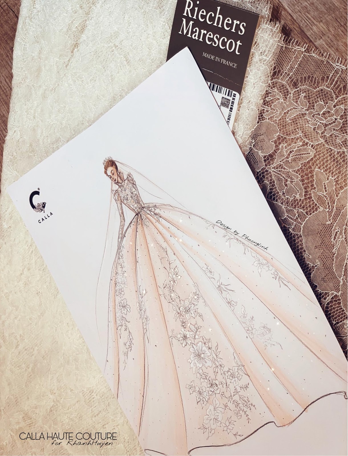 Bản phác họa của chiếc váy đặc biệt mang tên Calla Haute Couture For Khanh Huyen.