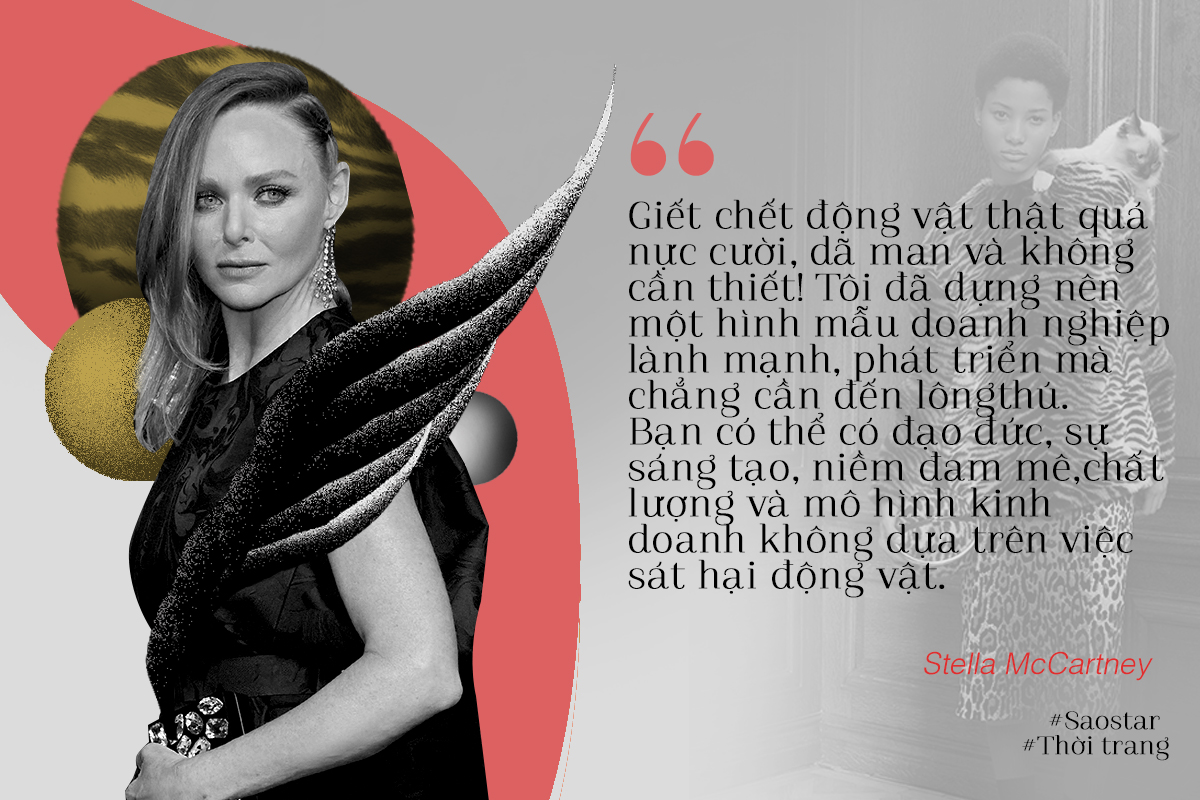 Là một trong số ít những nhà thiết kế thế hệ mới không sử dụng bất kỳ chất liệu được làm từ động vật. Stella McCartney, cô con gái của ngài Paul McCartney và mẹ là nhà hoạt động vì động vật Linda McCartney đã nhận được sức ảnh hưởng lớn về lối sống nhờ bố mẹ từ bé