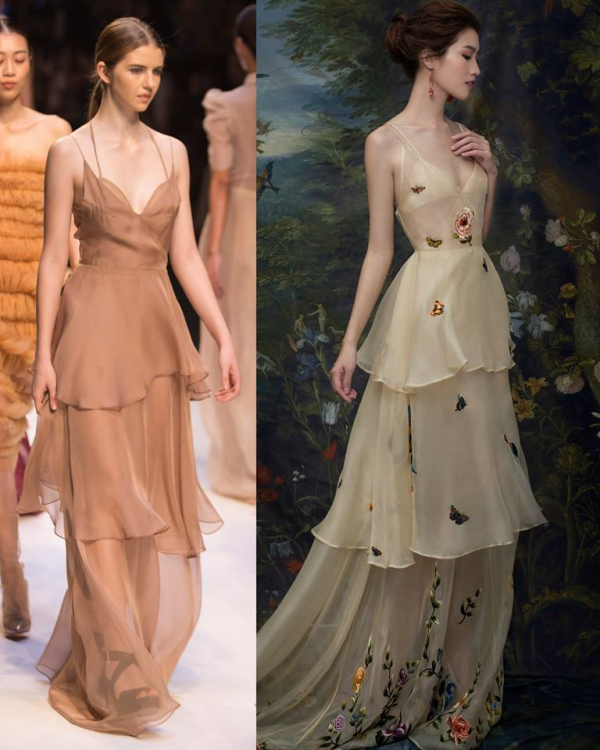 Mẫu váy 21SIX (bên trái) và Trần Hùng (bên phải), dường như sự giống nhau từ phom dáng hoàn toàn lên đến 90%.