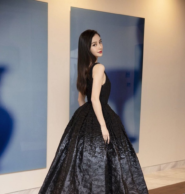 Angelababy đẹp không góc chết trong clip được quay để khoe độ bồng bềnh của váy đen kén người mặc.