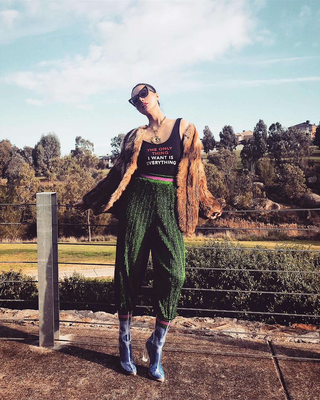 Với vóc dáng đẹp không kém siêu mẫu, Paris Tiên đôi lúc cũng thử làm mới mình với các item hot hit hợp thời như boots trong suốt, áo khoác lông…