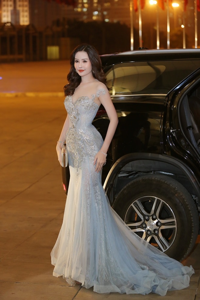 Mới đây, khi tham gia sự kiện ra mắt trung tâm đào tạo hoa hậu Việt Nam, Lê Âu Ngân Anh khoác lên người bộ váy dạ hội xuyên thấu được điểm xuyết những chi tiết vô cùng tỉ mỉ và kì công.