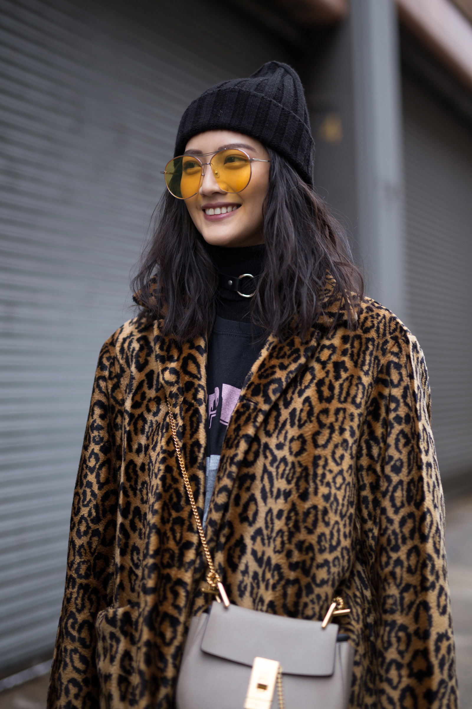 Diện mạo của cô nàng càng thêm phần “chất chơi” với sự xuất hiện của chiếc kính bảng to.