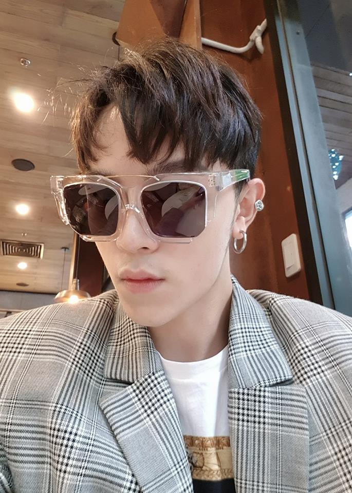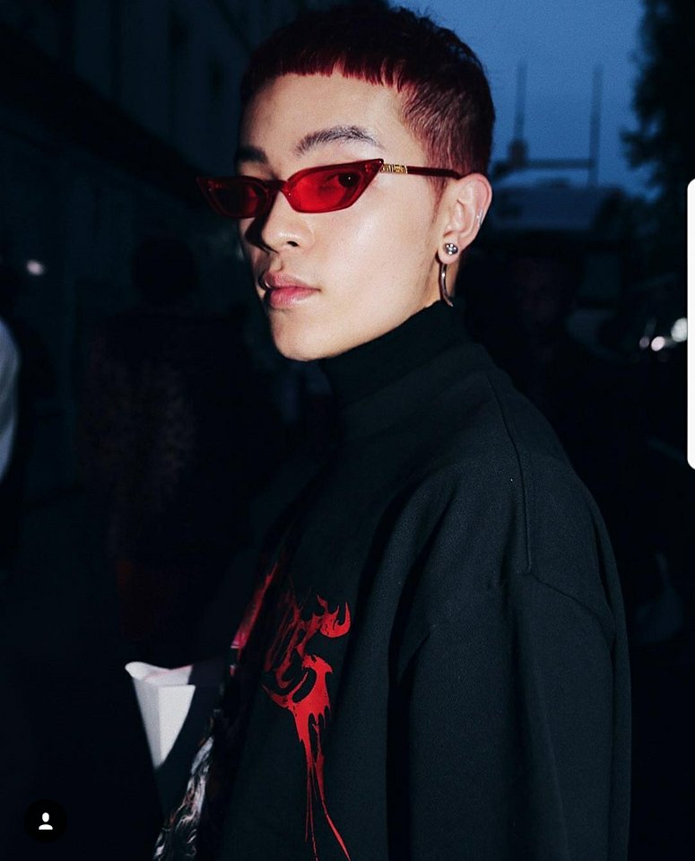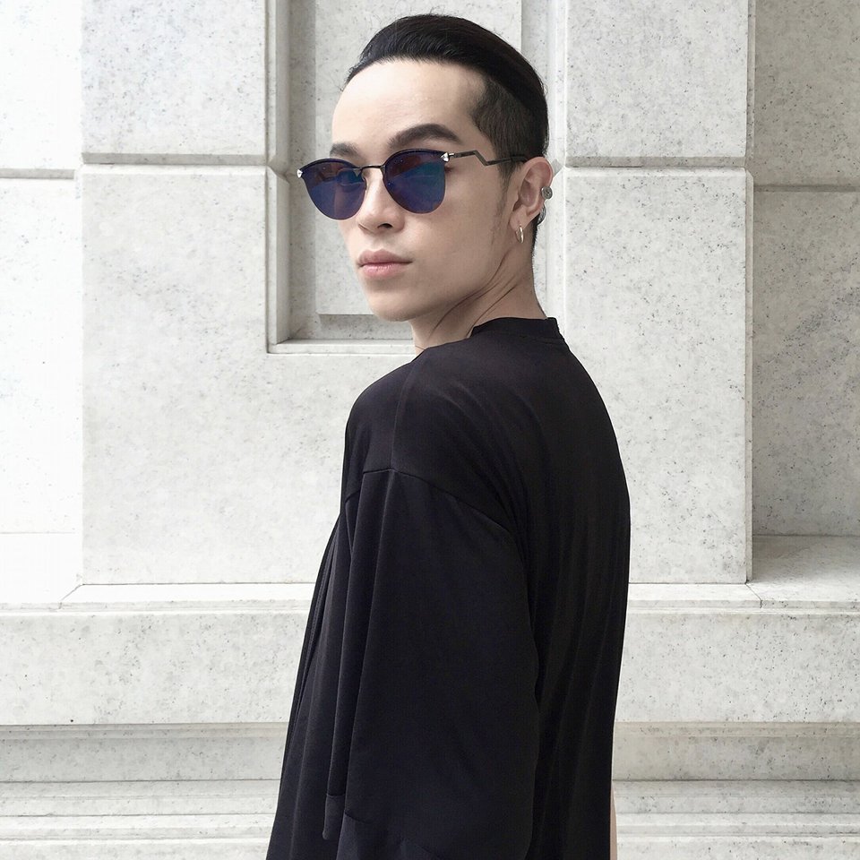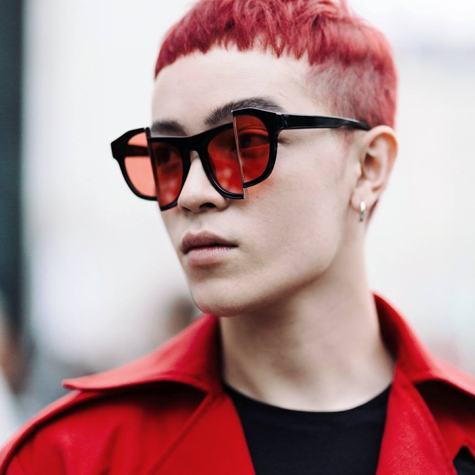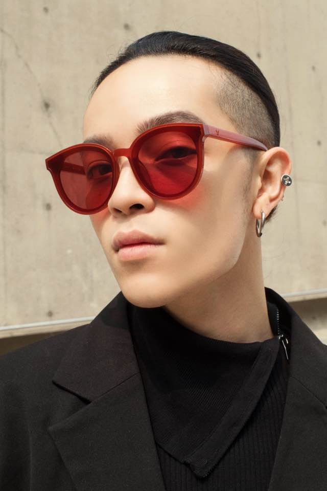 Trong ảnh này, Kelbin sử dụng kính đen với phần mắt kính xếch của Le Specs, có giá 170$.