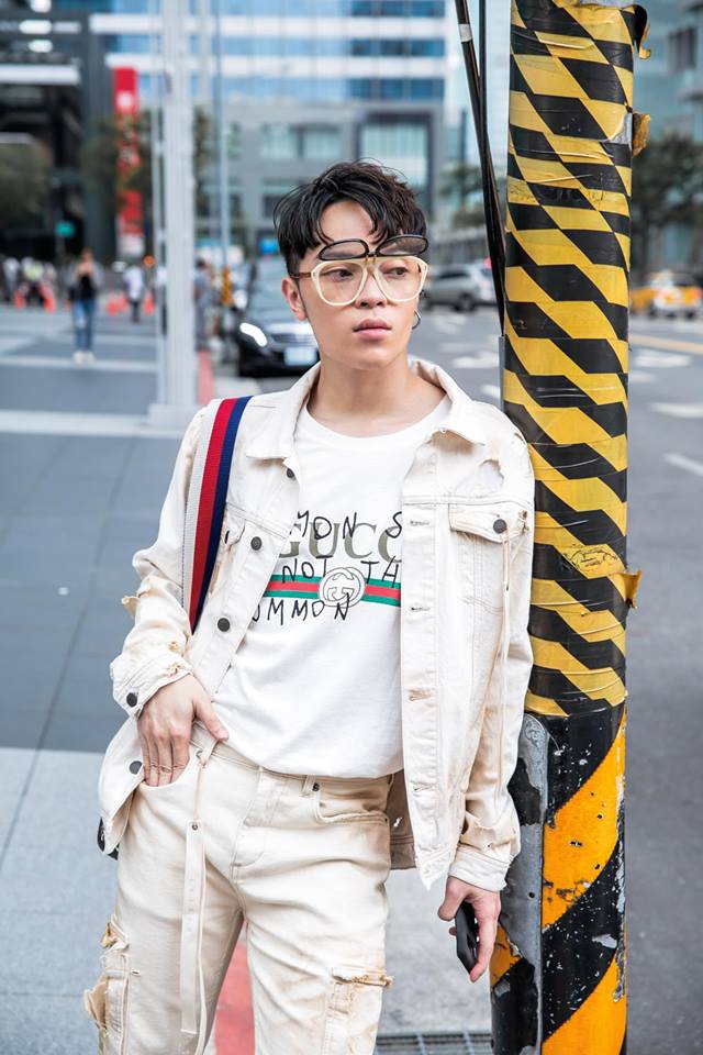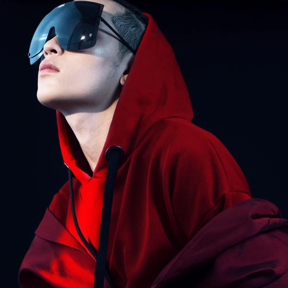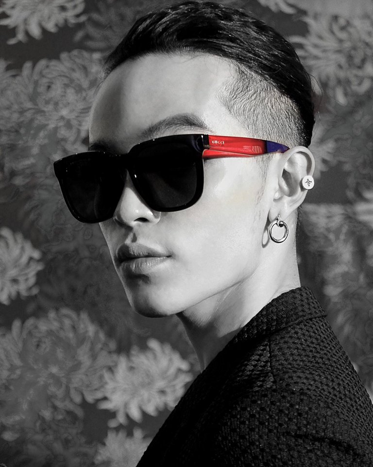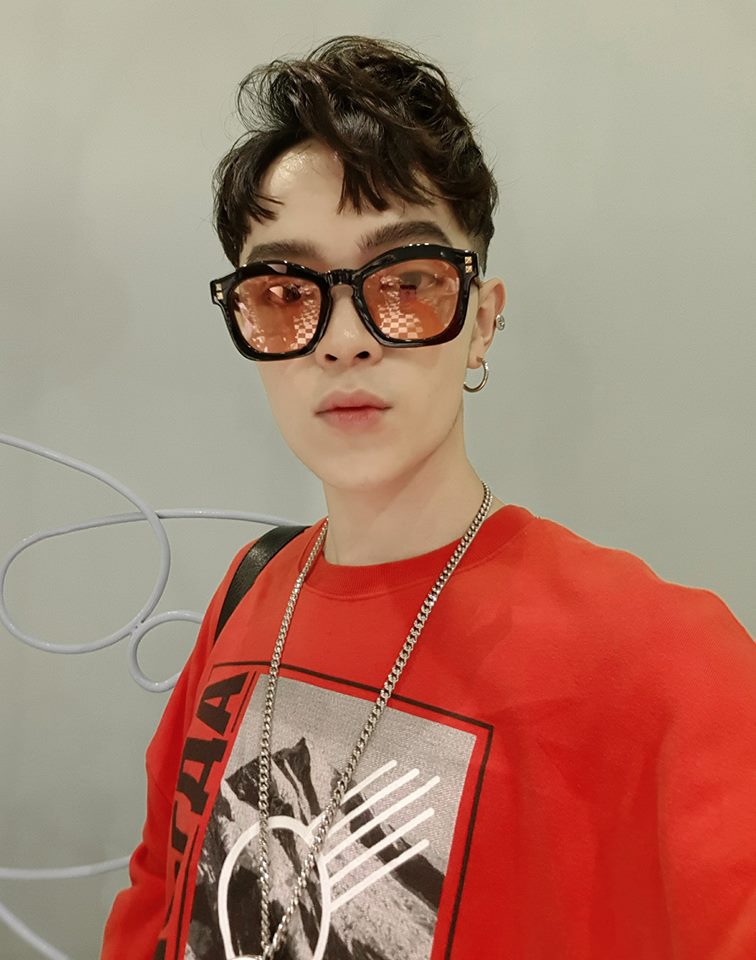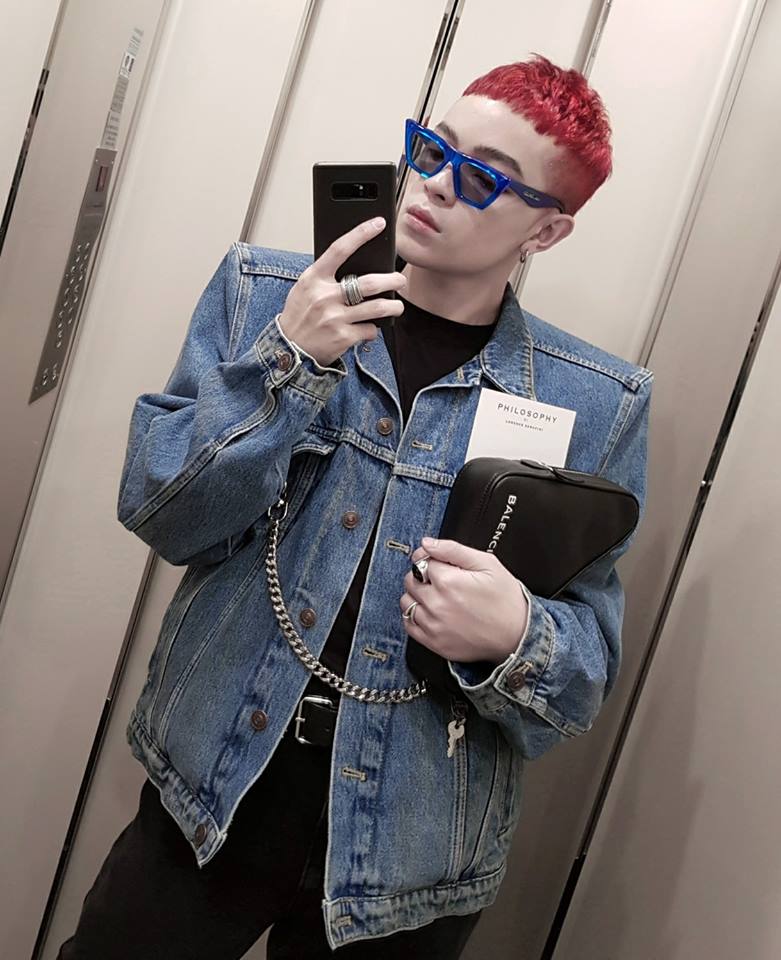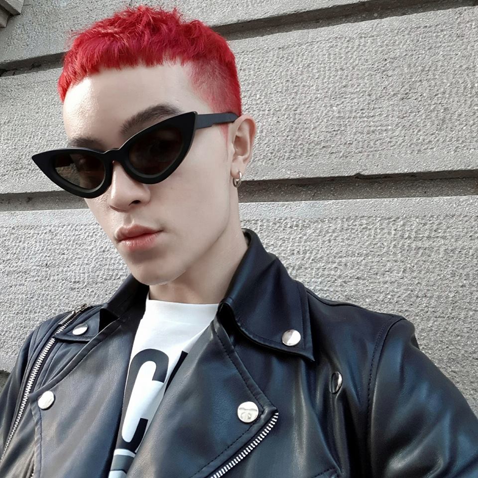 Trong ảnh này, Kelbin sử dụng kính đen với phần mắt kính xếch của Le Specs, có giá 170$.