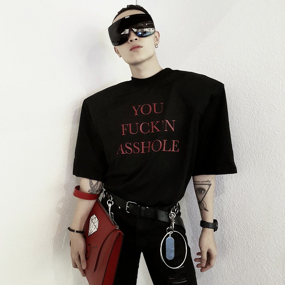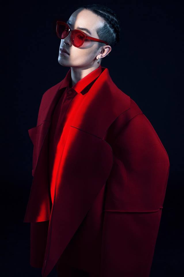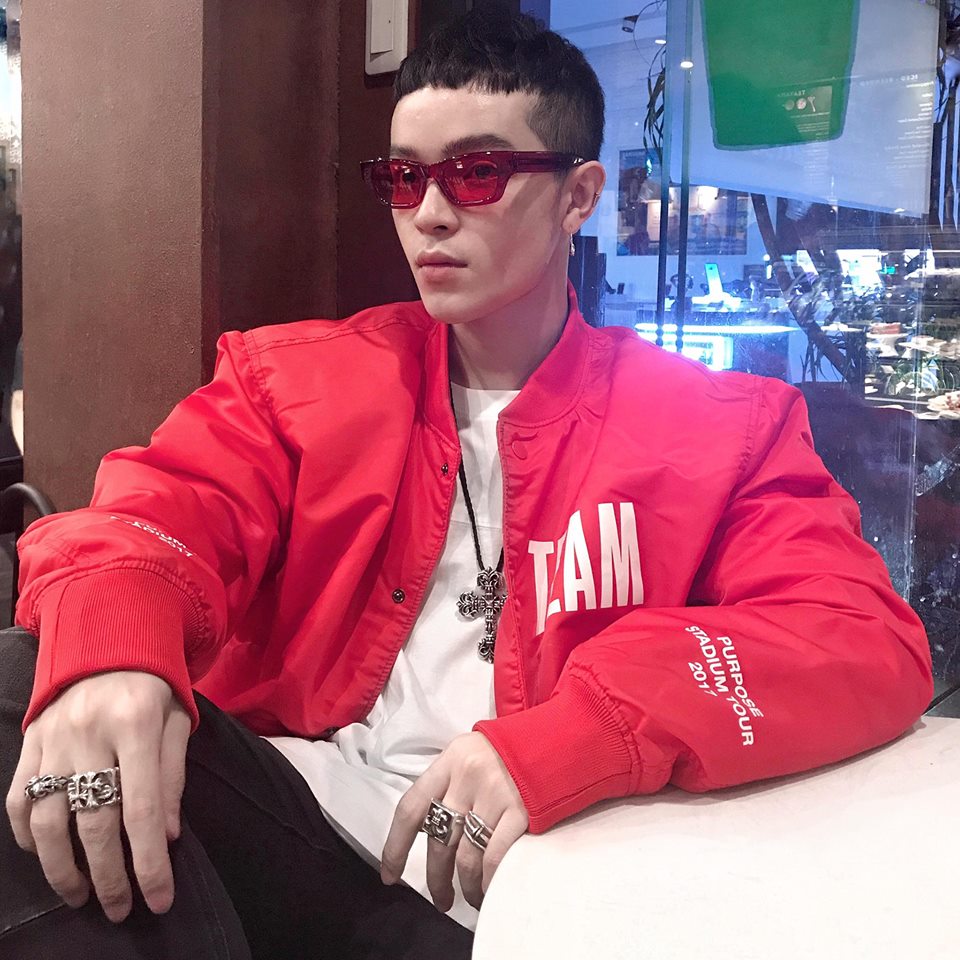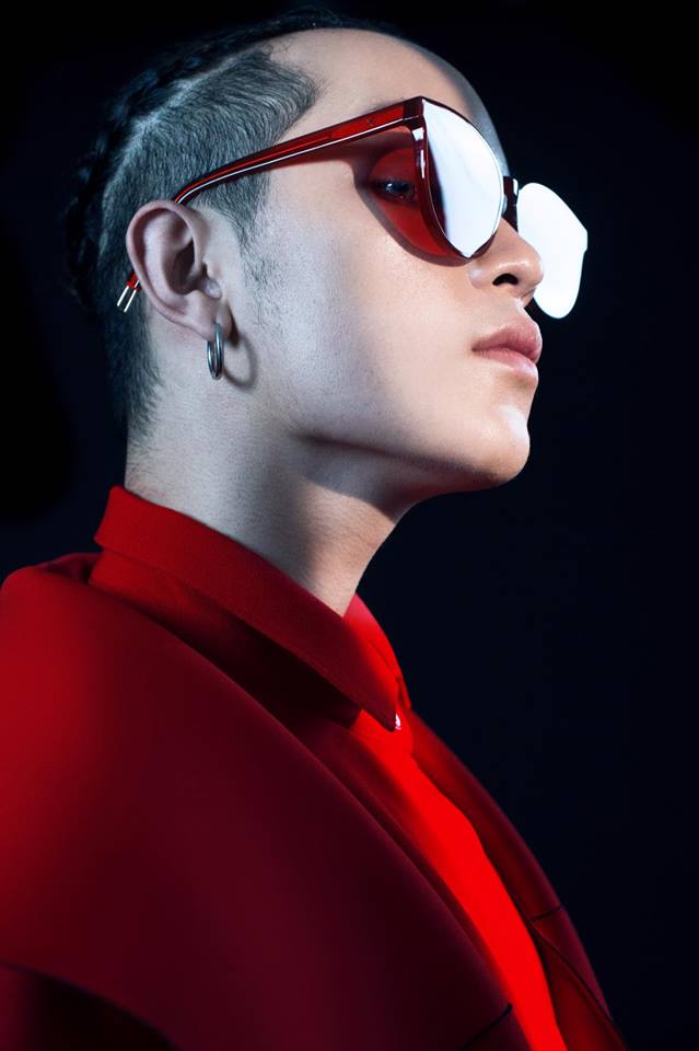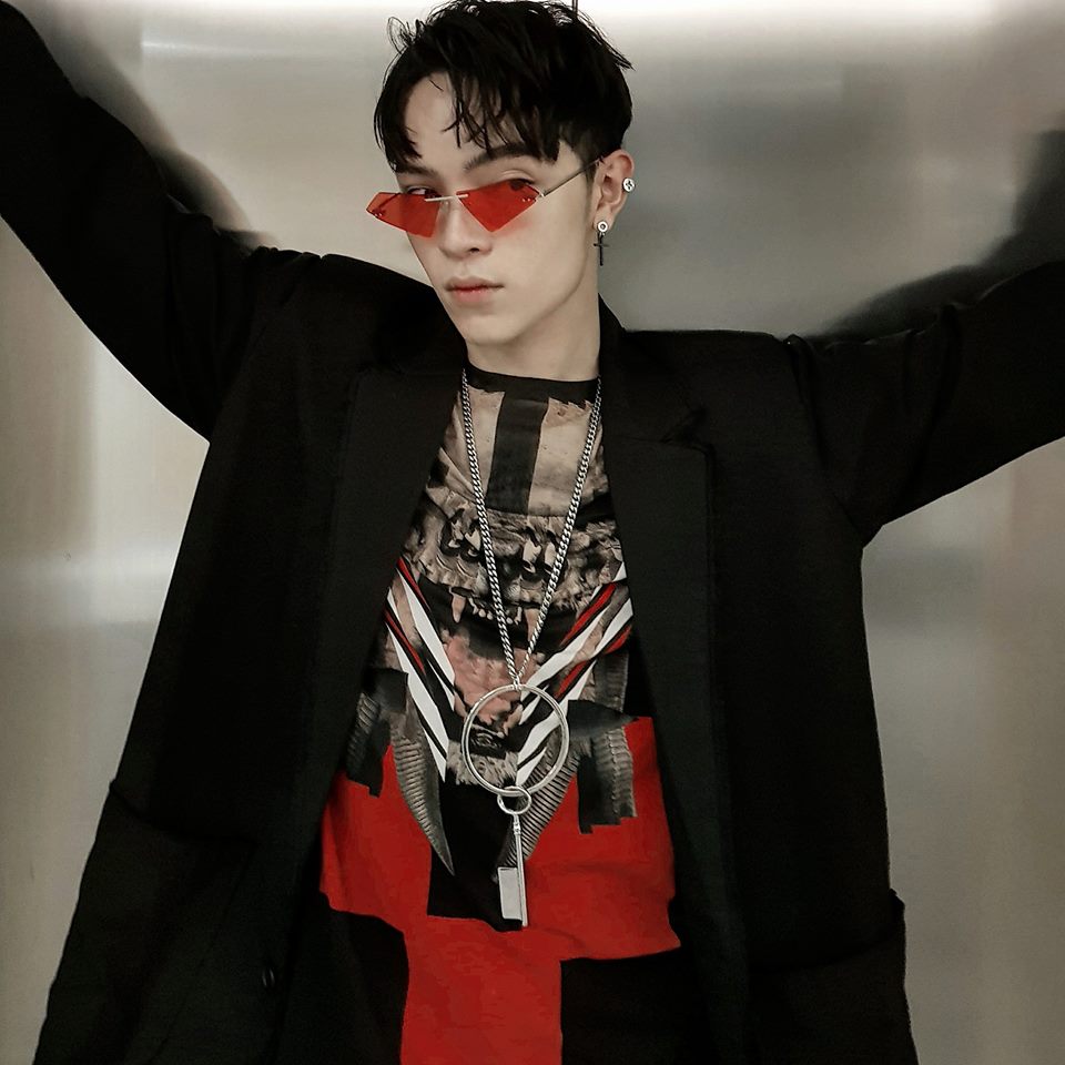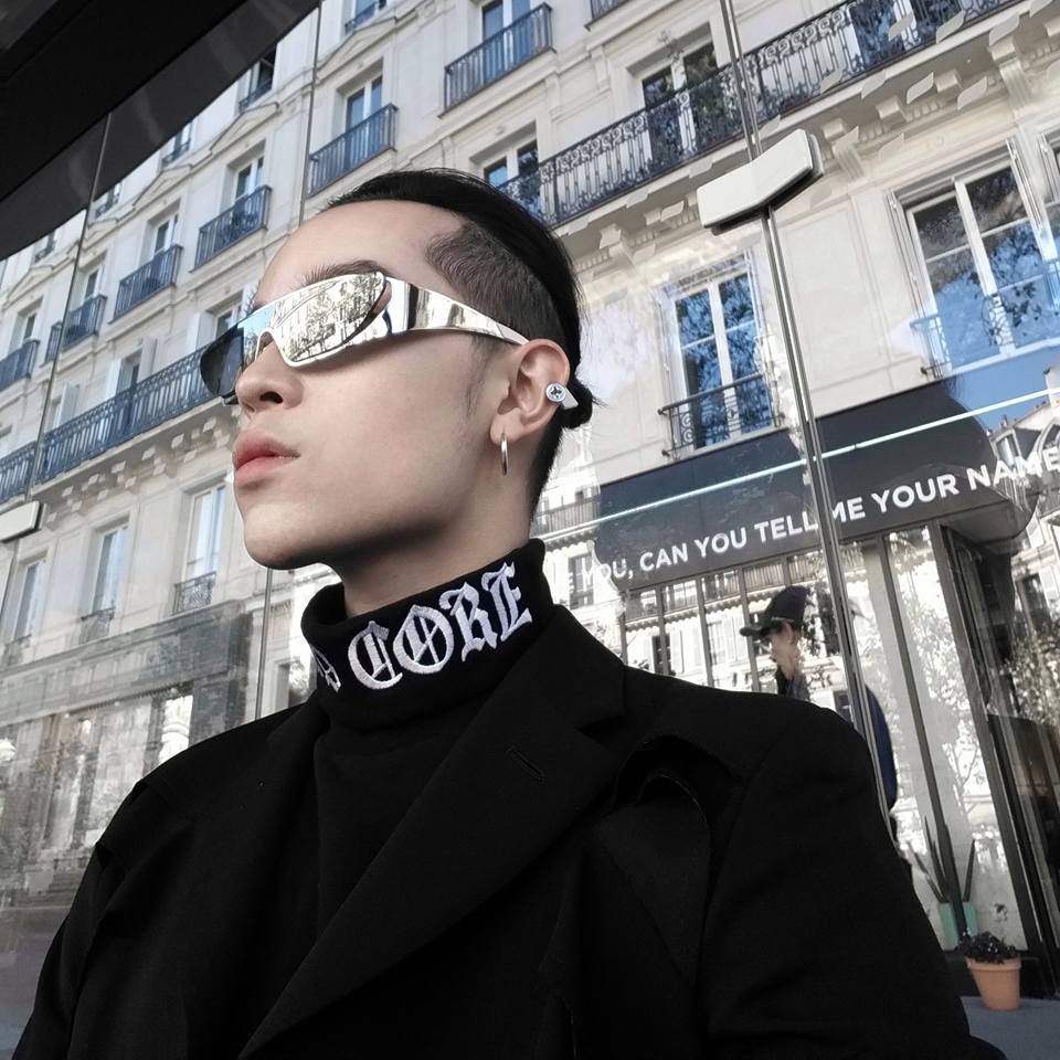 Đôi mắt kính có hình khối “không giống ai” này của Acne Studios được Kelbin tậu về với giá 380$. Anh chàng kết hợp cùng áo vest độn vai và áo đen cổ lọ bên trong.