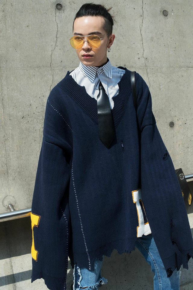 Một chiếc kính màu vàng nữa của Gentle Monster được Kelbin phối hợp với áo len dáng dài vạt rách lạ mắt. Chiếc kính này được Kelbin mua về với giá 320$.