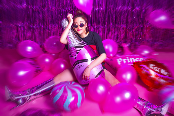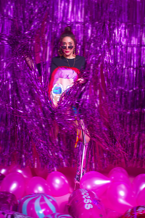 Gam màu tím hồng tạo nên vẻ tươi tắn, trẻ trung cho set chụp.