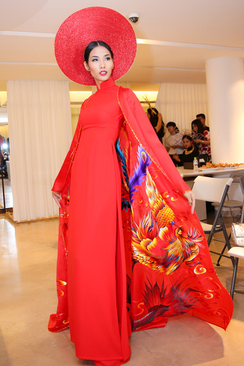 Với Hoàng Thùy, trưng dụng váy áo đỏ thường xuyên không phải là sự ngẫu nhiên hay chỉ là sở thích đơn thuần. Mà trong quá trình ngồi ghế nóng The Face mùa thứ hai, cô được người hâm mộ gọi là 'hoa dâm bụt”. Với lý do đó, khi đến với Hoa hậu Hoàn vũ người đẹp muốn mang hình ảnh độc đáo này để gây ấn tượng với khán giả. .