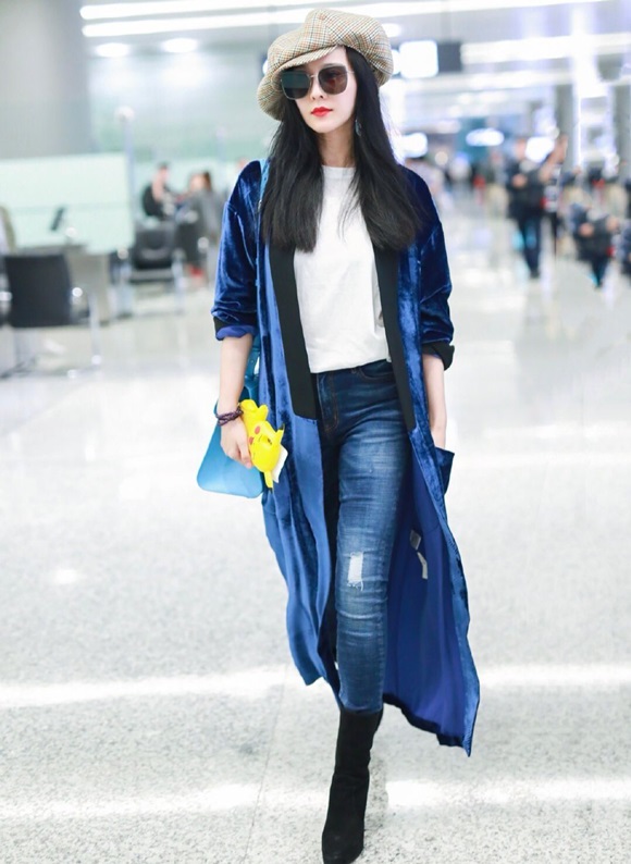 Trước đó , cô gây ấn tượng khi mang theo một loạt phụ kiện nổi bật. Cô sử dụng mũ đội đầu màu vàng có in hình quả cam, đeo kính viền xanh lá, xách túi tông hồng điệu đà. Không chỉ có vậy bà hoàng Cbiz còn dùng ốp điện thoại hình Pikachu nhí nhảnh