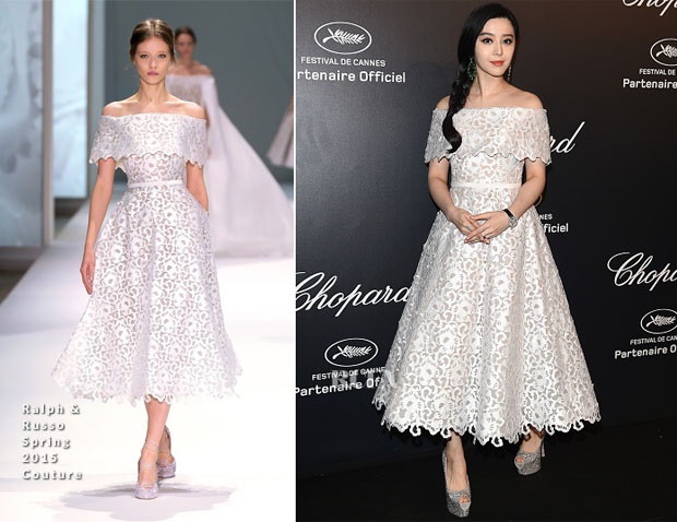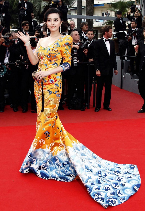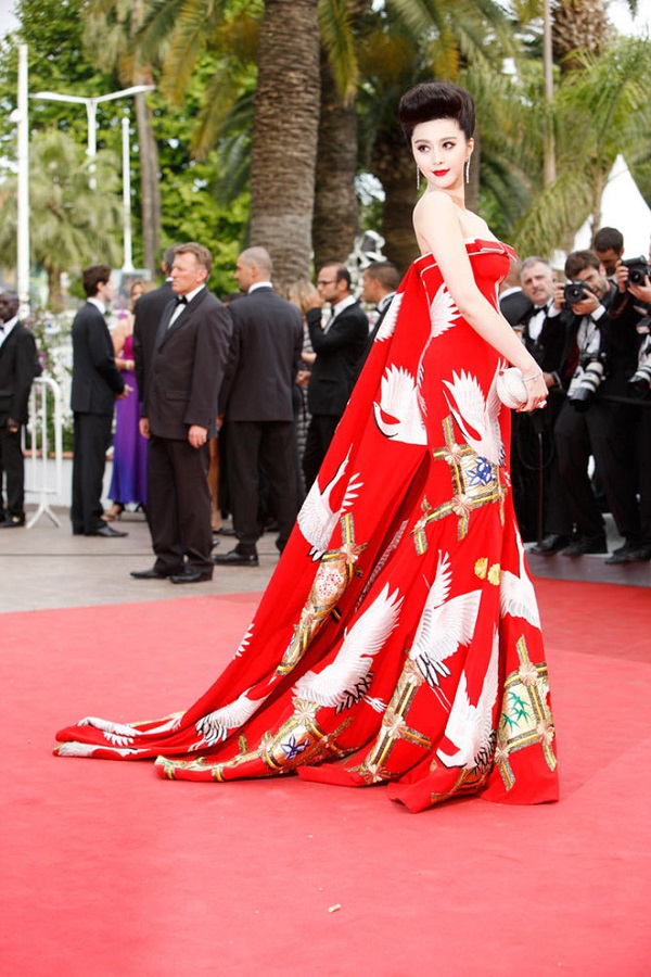 Tại LHP Cannes 2012, Phạm Băng Băng diện trên mình bộ váy đuôi cá do chính NTK Christopher Bu làm riêng cho cô cùng kiểu tóc đậm chất phụ nữ Trung Hoa thời nhà Đường. Báo chí quốc tế luôn “ưu ái” mỗi khi cô xuất hiện. Chỉ cần nhìn bộ cánh mà mỹ nhân xứ Trung là họ biết cô từ đâu đến