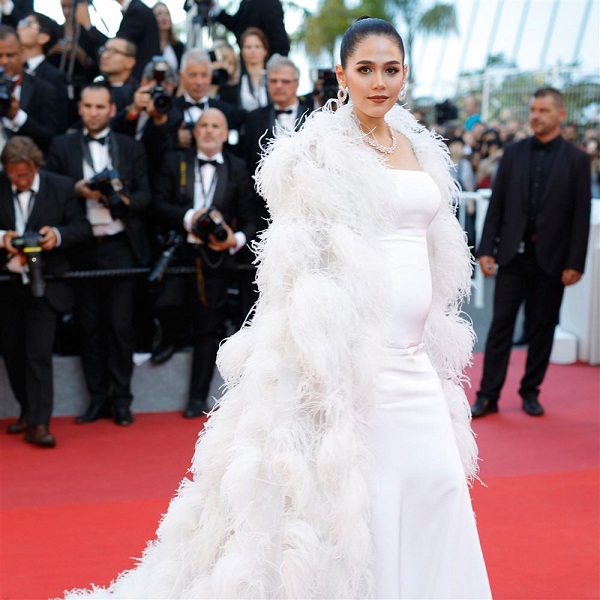 Khi tham gia LHP Cannes 2017 và mang thai song sinh được 5 tháng, Phạm Băng Băng xứ Thái cũng đánh bại hàng loạt mỹ nhân khác hóa thành nàng ” thiên nga” mặc một bộ đầm trắng muốt do Ralph & Russo thiết kế