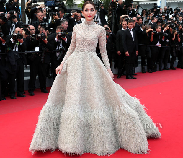 Chompoo Araya thu hút toàn bộ cánh truyền thông tại Pháp khi diện bộ váy trang nhã và tinh tế của Ashi Studio khi lần đầu đến thảm đỏ LHP Cannes 2015.