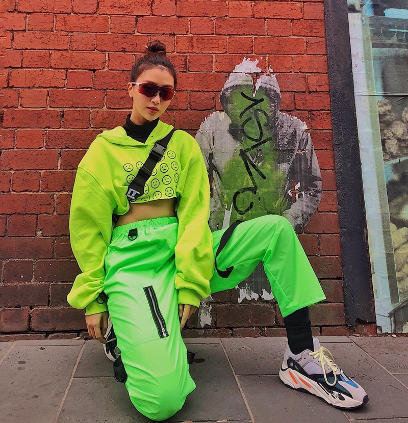 Quỳnh Anh Shyn xứng đáng với danh hiệu “phong cách đường phố” với set đồ phủ sắc xanh neon chói mắt theo phong cách thể thao.