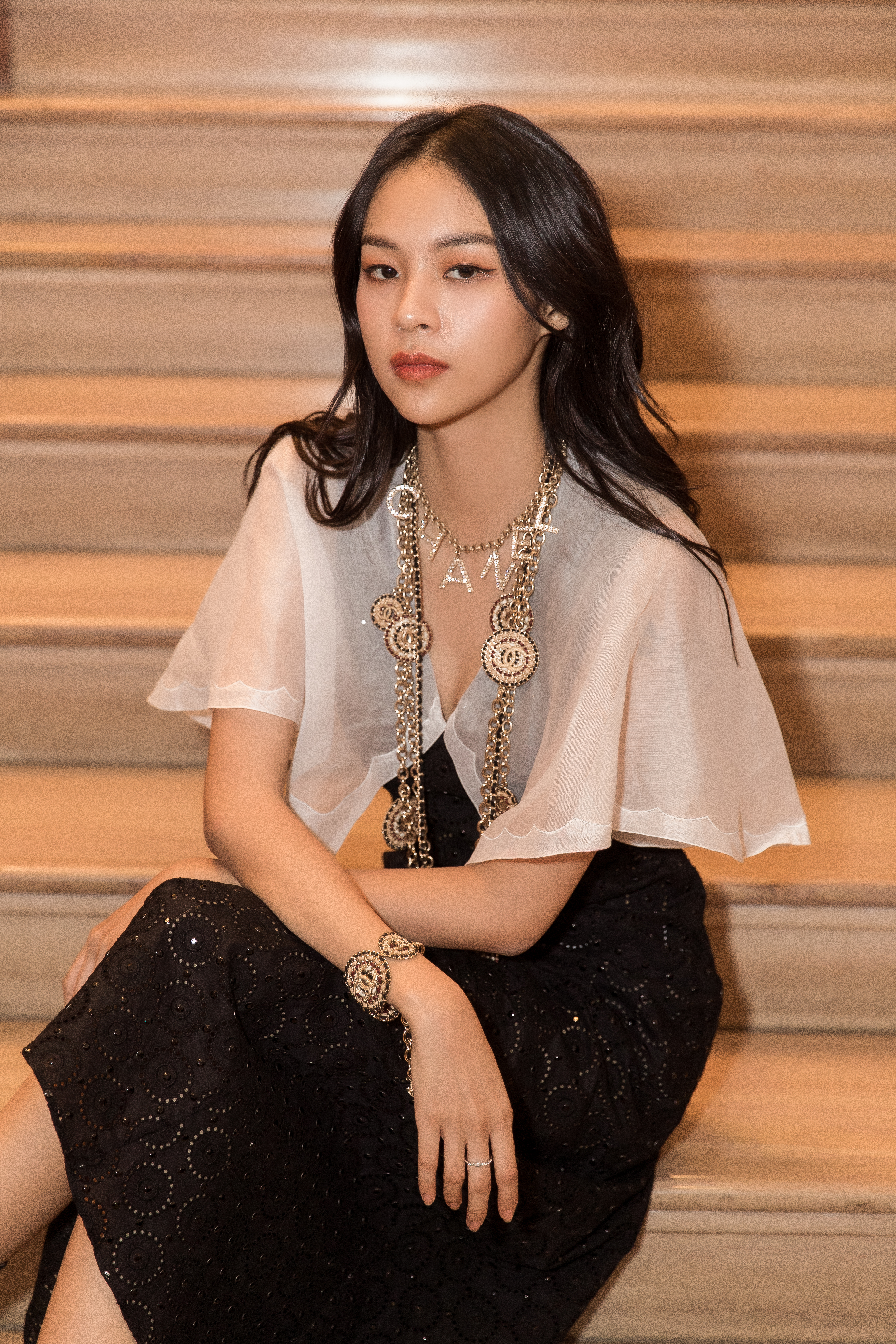 Trước show diễn, xuất hiện ở thảm đỏ, cô nàng cũng chọn cho mình set đồ full look của Chanel với tổng giá trị 500 triệu đồng.