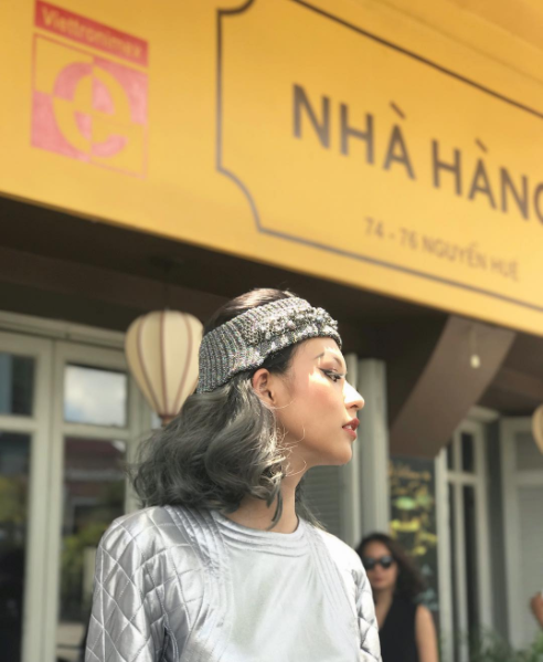Phí Phương Anh với góc nghiêng “thần thái” đầy kiêu kỳ trong chiếc bờm tóc len đính những hạt ngọc sang chảnh của nhà mốt Chanel.