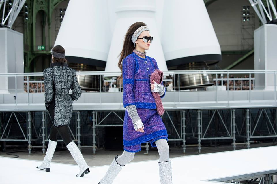 Chanel nổi tiếng với sự tạo hình độc đáo trên chất liệu vải tweed cổ điển, quý phái. Chỉ cần bạn khoác lên người là sẽ có phong thái của một tín đồ thời trang thực thụ, sành điệu và chịu chơi. Bên cạnh đó, trong show diễn Chanel Fall Winter 2017, những chiếc bờm tóc bản to hay thigh high boot đều trở thành điểm nhấn thú vị mang tới sự chỉn chu cho người mặc. Vì thế, nếu bạn thấy một tín đồ thời trang nào bê nguyên cả set từ sàn runway xuống đời thực thì cũng đừng thắc mắc nhé.