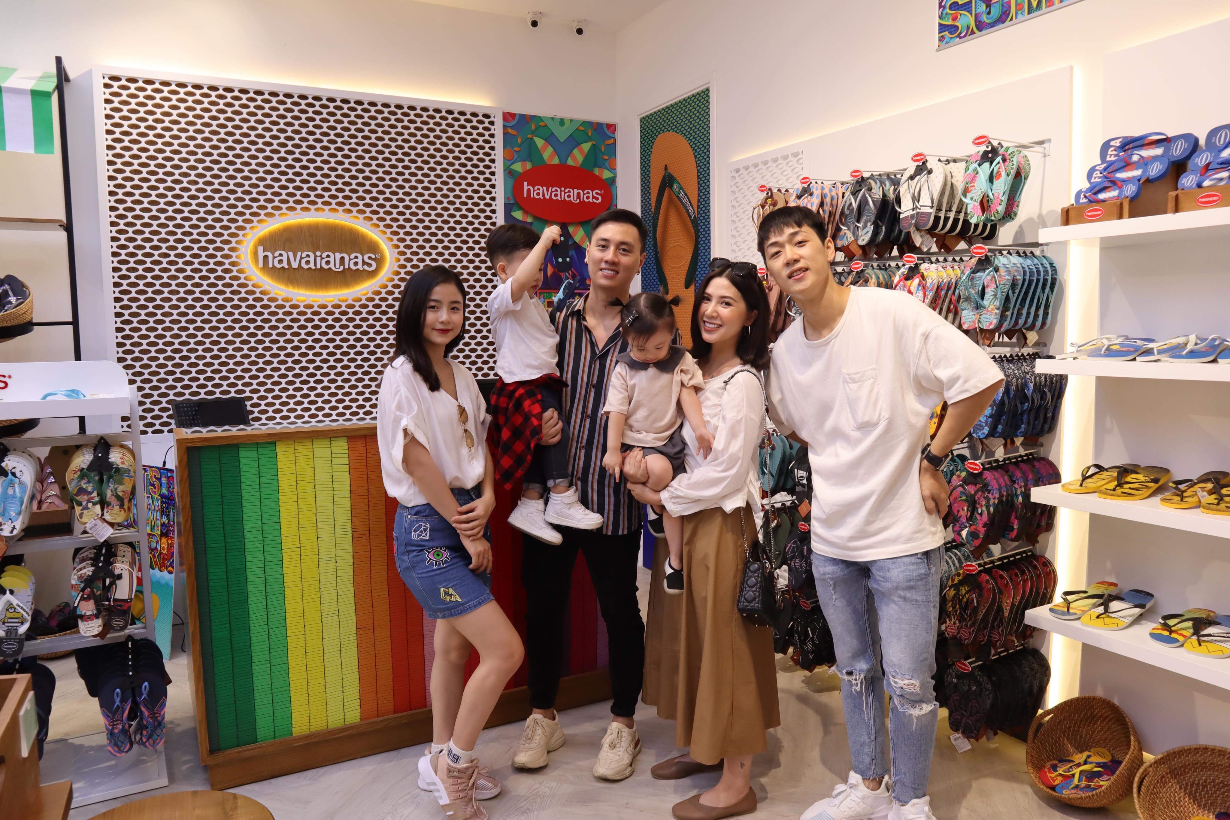 Trong không gian đầy hứng khởi của cửa hàng Havaianas thứ 7 mới khai trương tại trung tâm thương mại Vincom Mega Mall Royal City Hà Nội, hai gia đình trẻ đã có những giây phút mua sắm cực dễ thương bên cạnh các thiên thần nhỏ của mình.