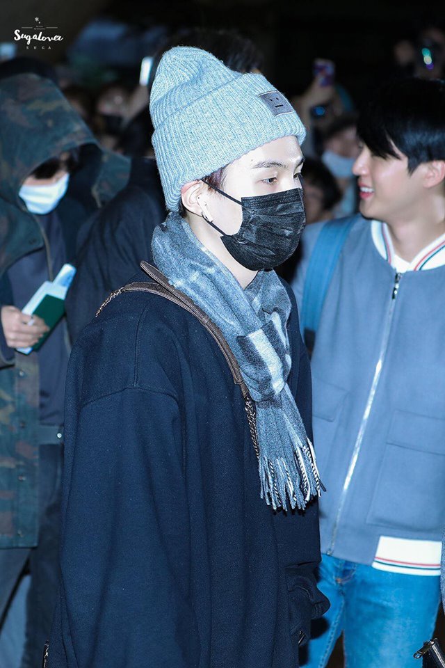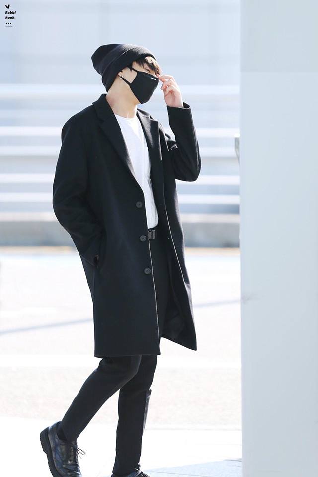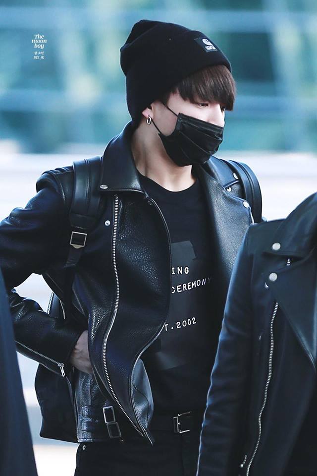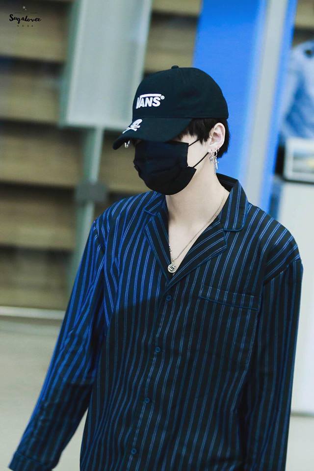 Nhưng người có phong cách thời trang sân bay đơn giản và kín mít nhất BTS chính là Suga. Dù là đi đâu hay thời điểm nào anh chàng cũng xuất hiện với nguyên cây đen trên người.